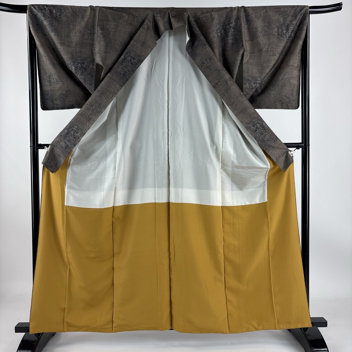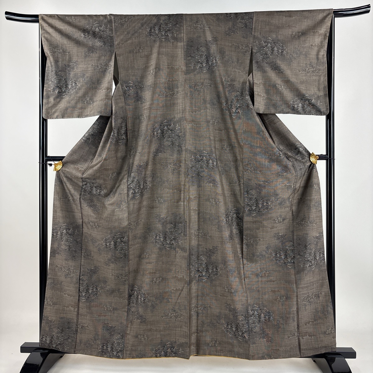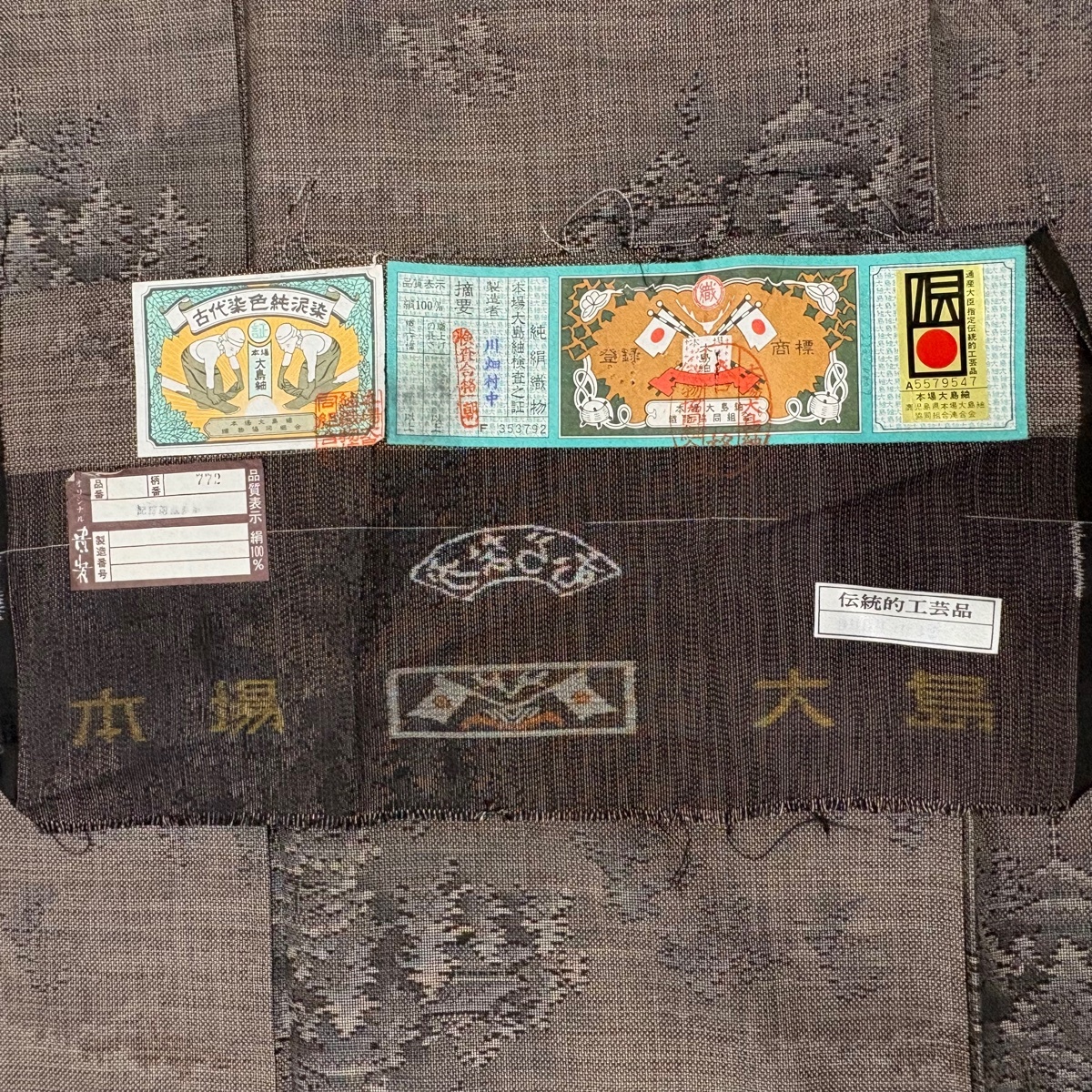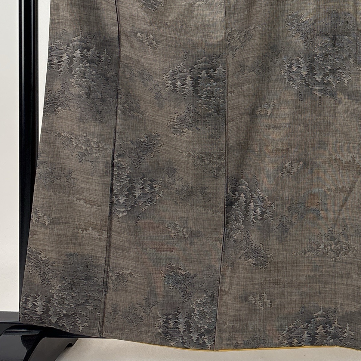 | 大島紬 秀品 証紙 純泥染 樹木 建物 焦茶色 袷 身丈162 裄丈66 M 正絹 【中古】 |