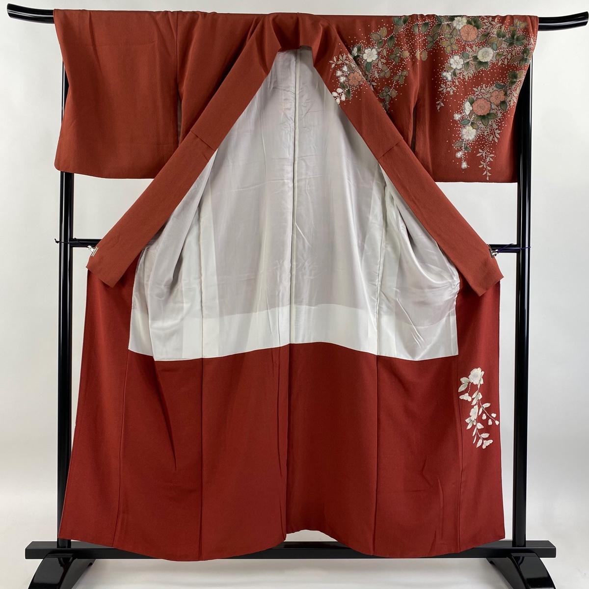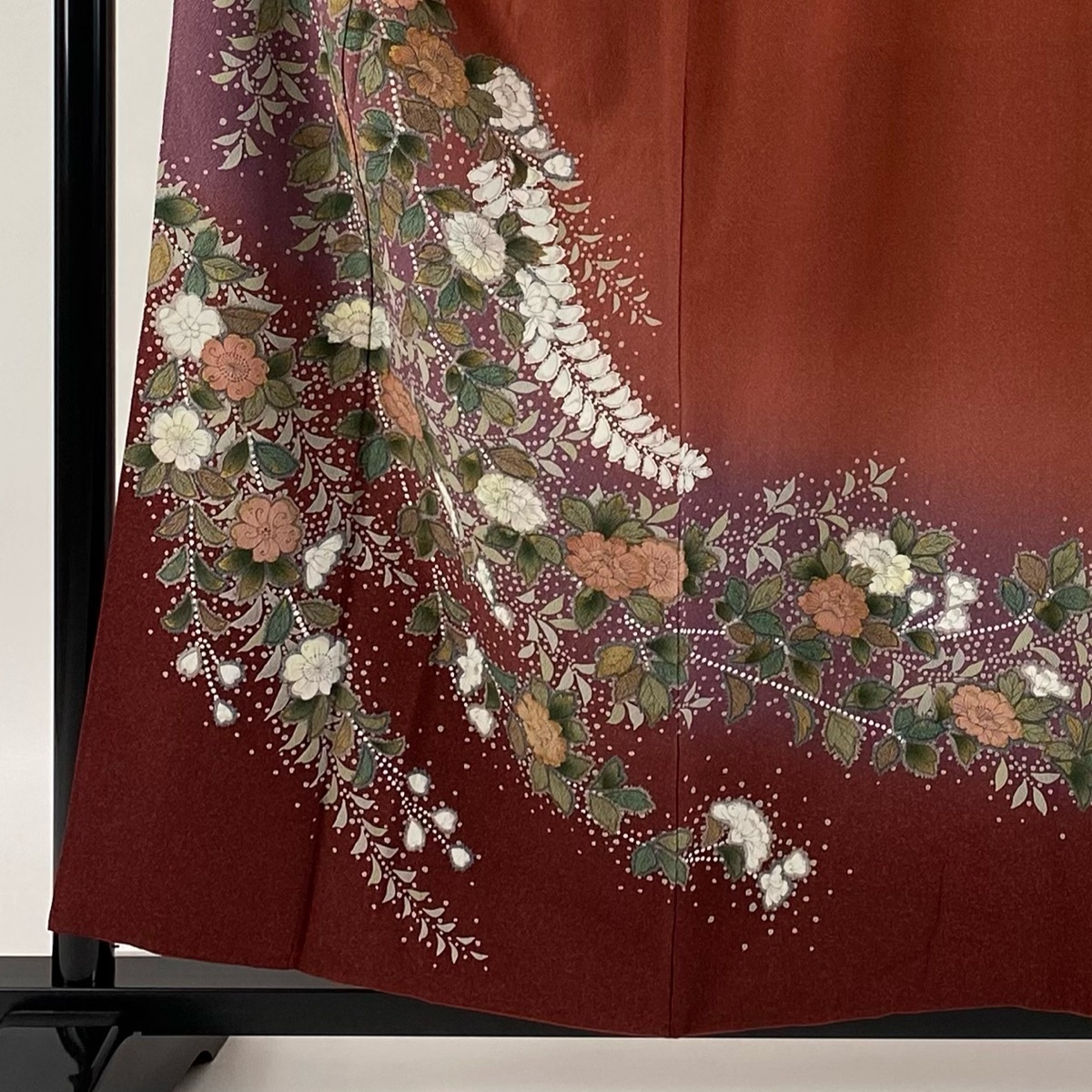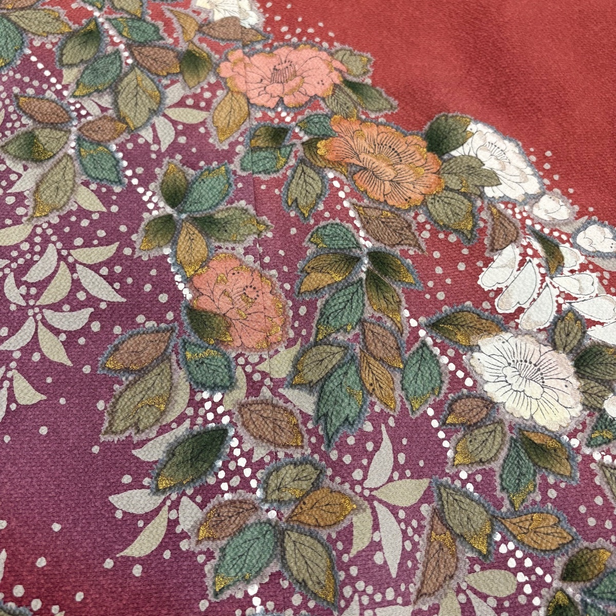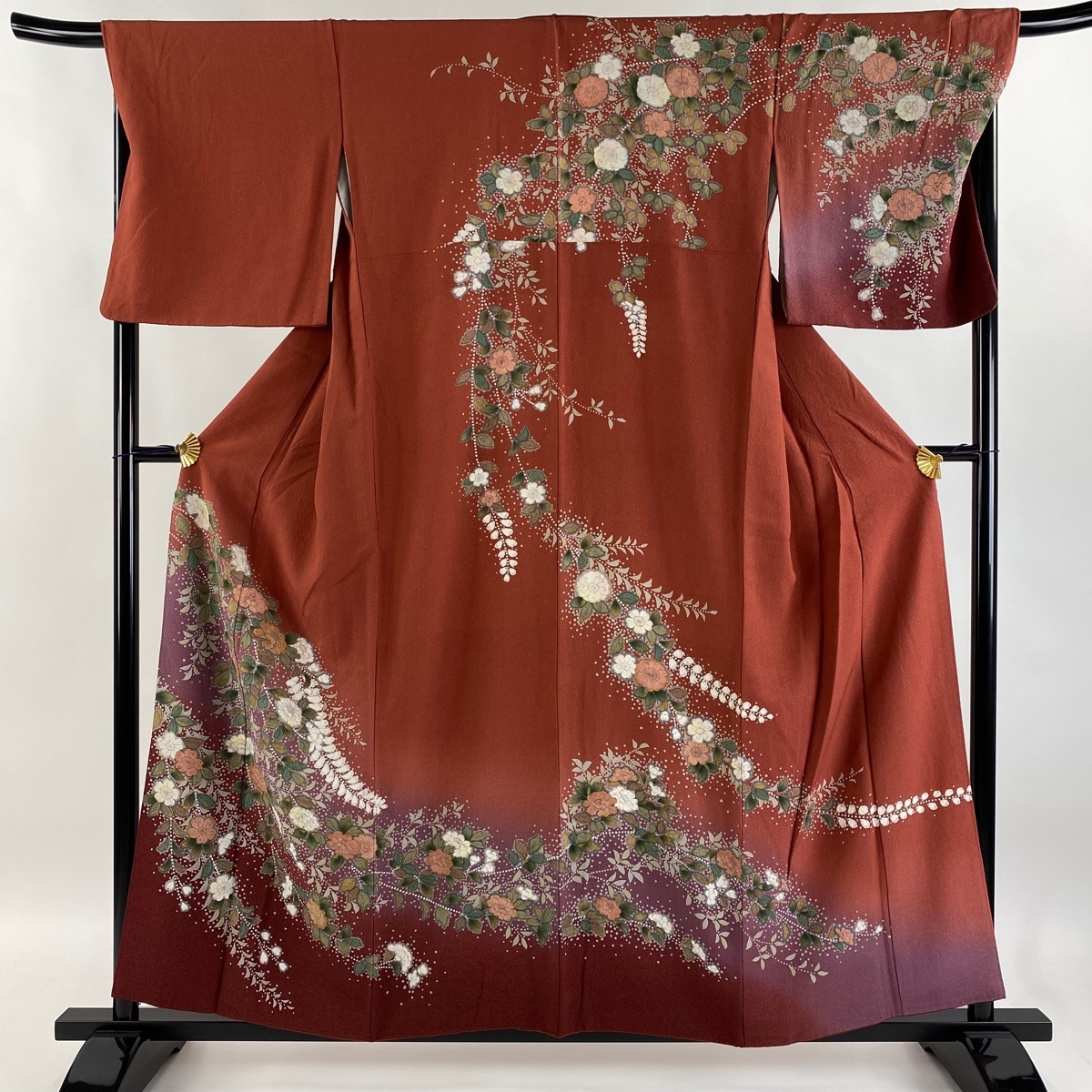 | 訪問着 秀品 辻が花 金彩 ぼかし えんじ色 袷 身丈156.5 裄丈68 L 正絹 【中古】 |