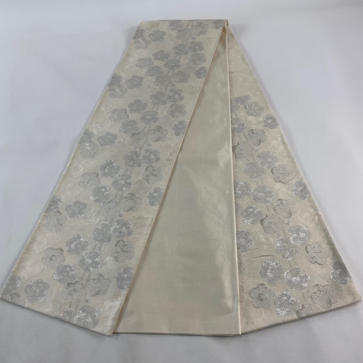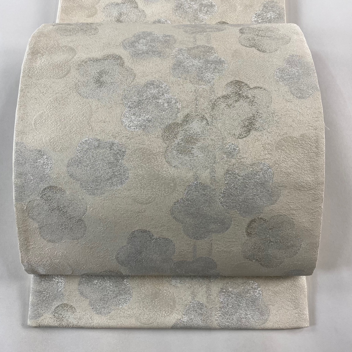 | 袋帯 美品 逸品 梅 銀糸 箔 クリーム 六通 正絹 【中古】 |