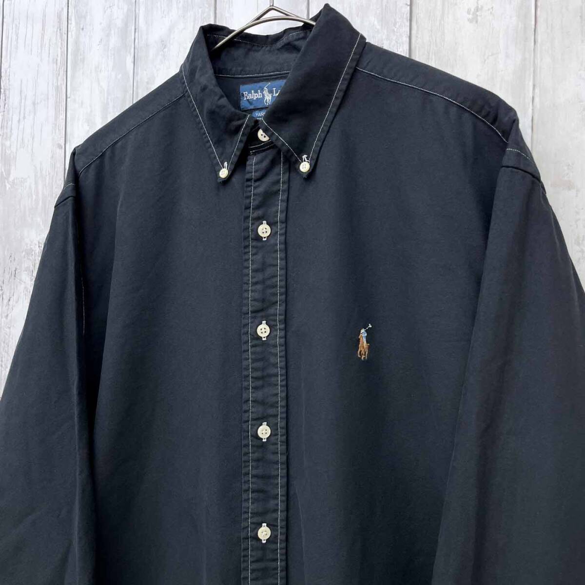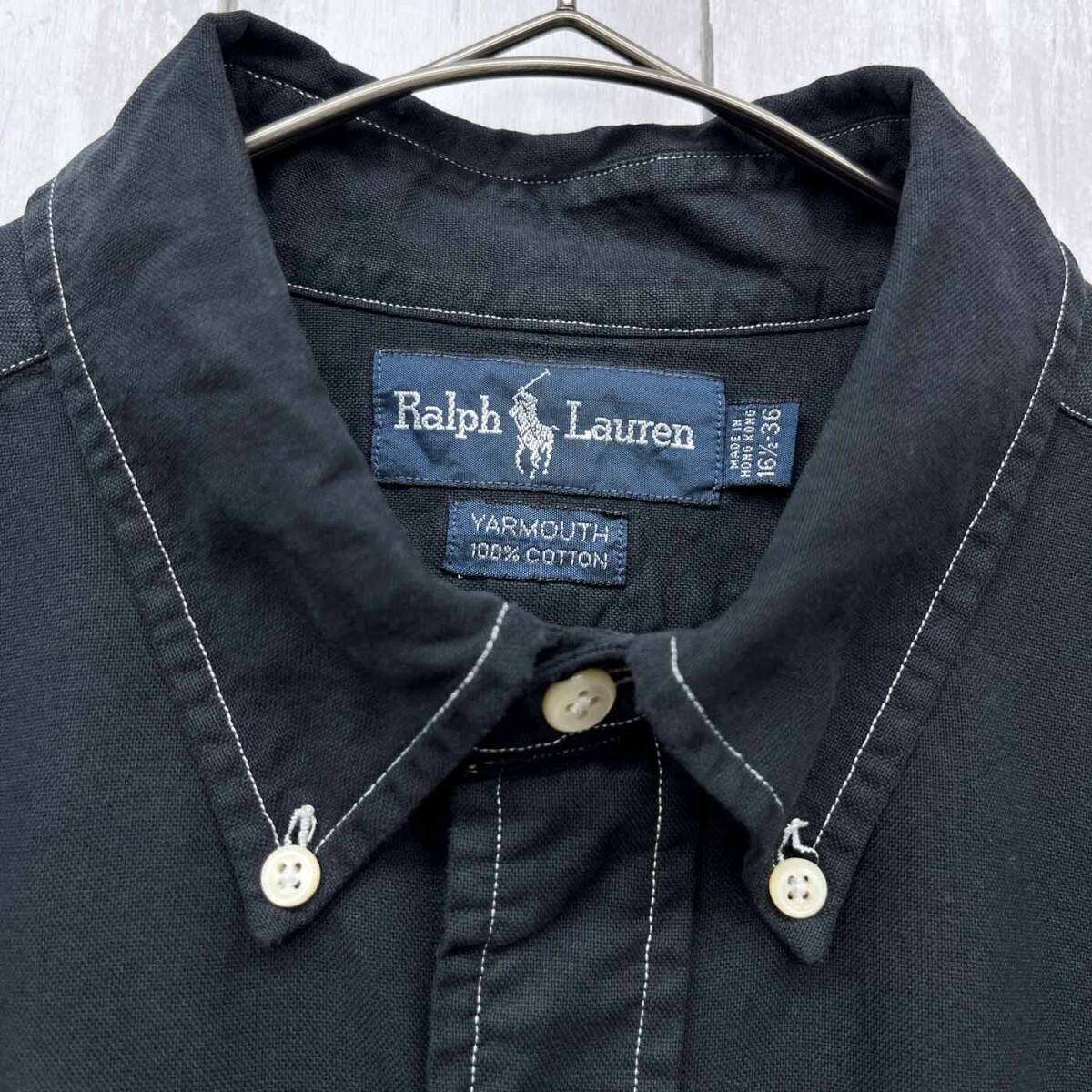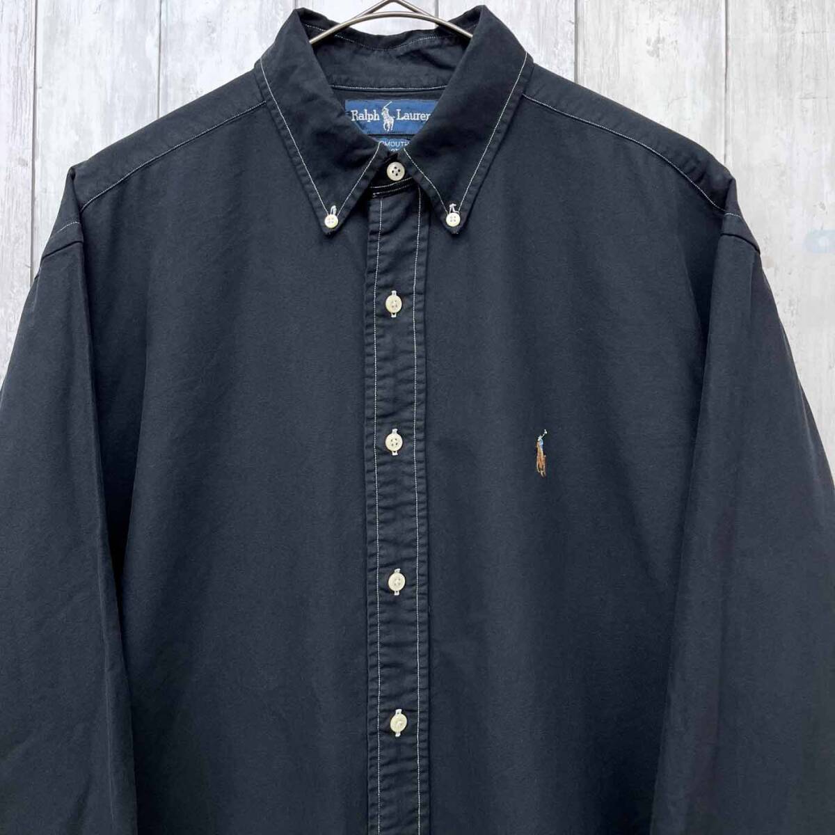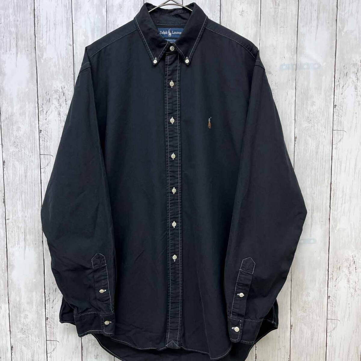 ラルフローレン Ralph Lauren 長袖シャツ メンズ ワンポイント 黒 YARMOUTH コットン100% 16 1/2 L~XLサイズ 6-511