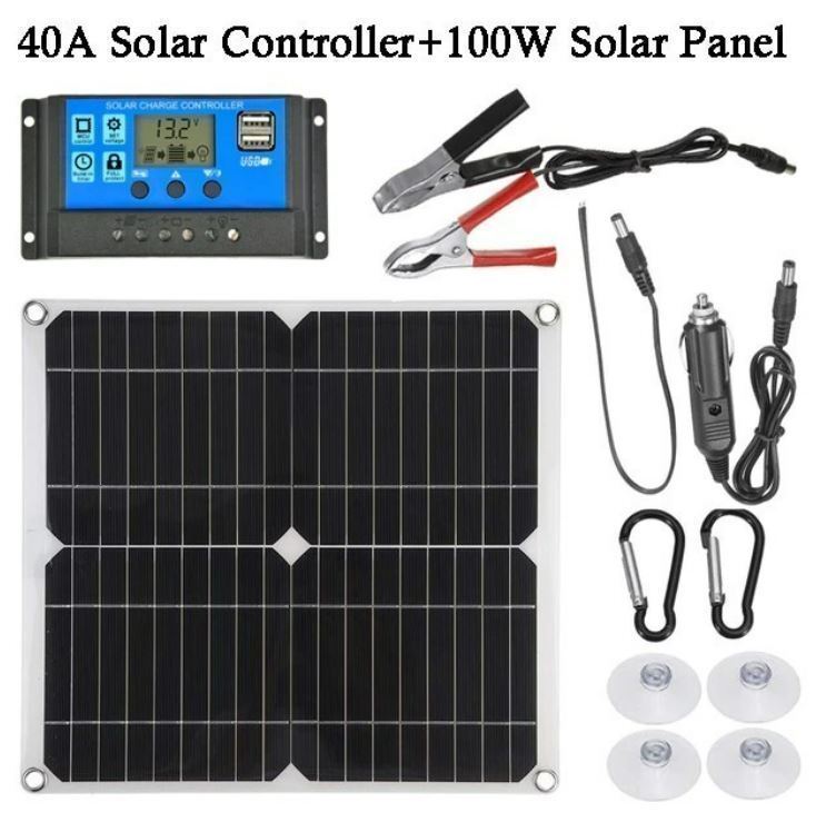 LDL984# 100W ★ソーラーパネル★ デュアル▲12V 5V USB コントローラ 防水 電池 ポリ 車 ヨット RV バッテリー 充電器 太陽光