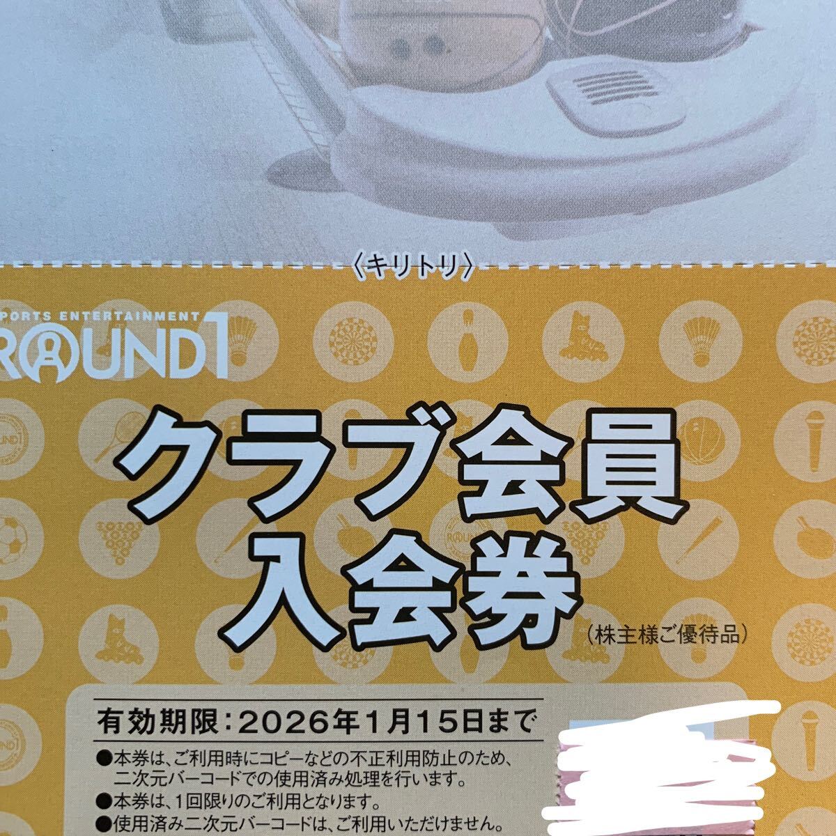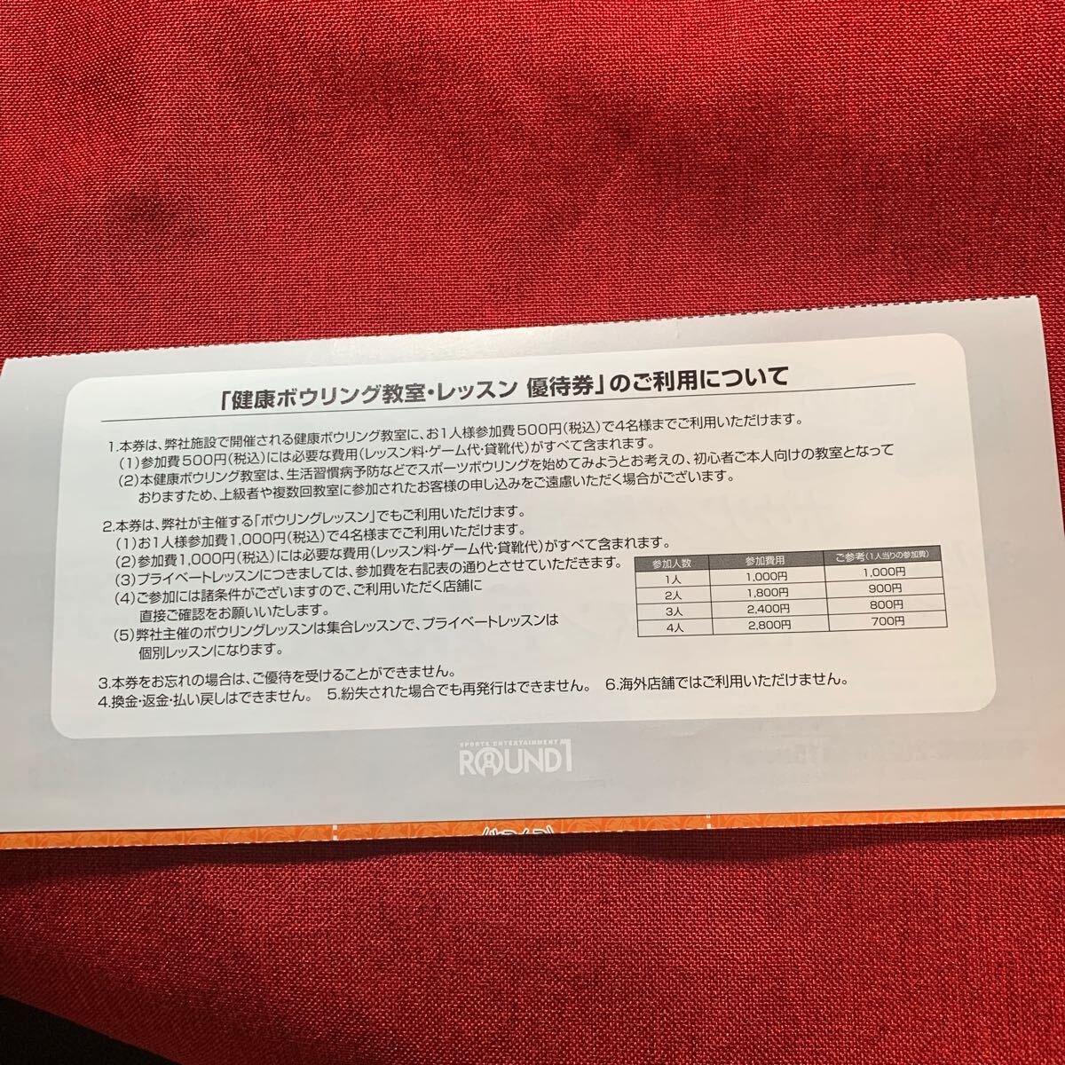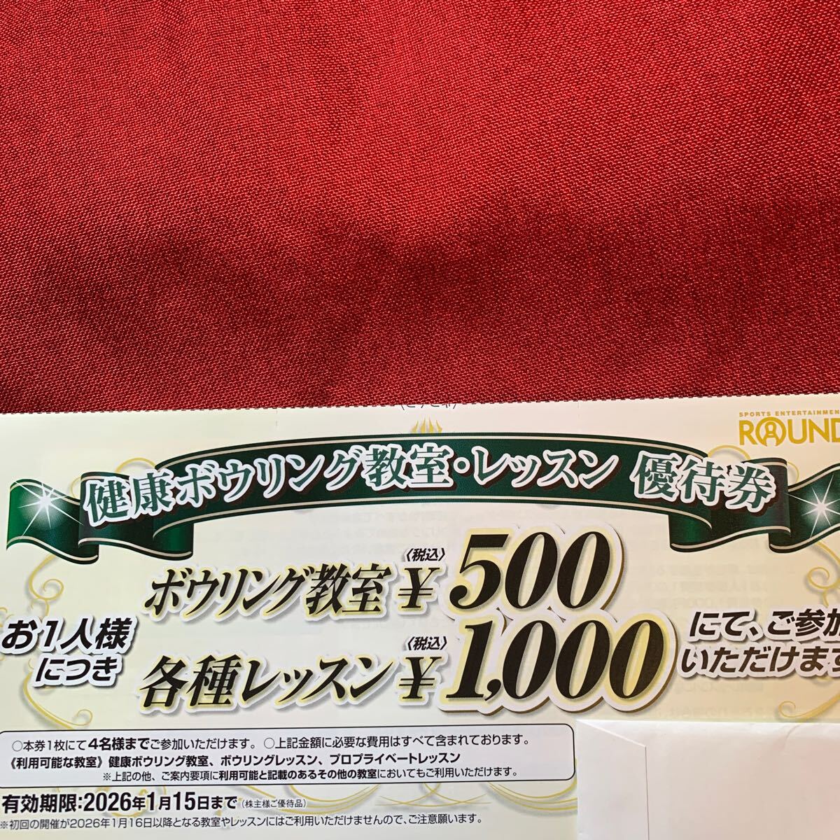ラウンドワン株主優待券500円×3枚+クラブ会員入会券1枚+健康ボウリング教室レッスン優待券1枚 20260115