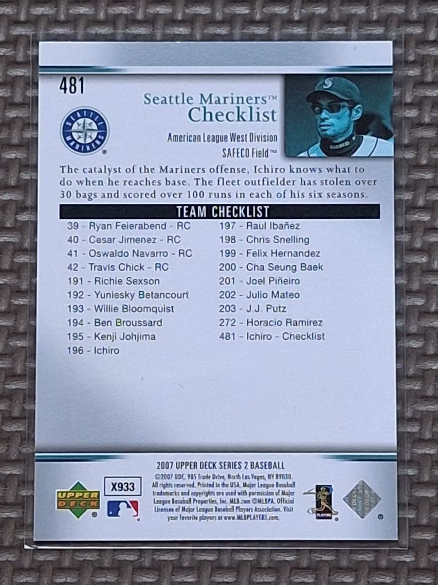2007 Upper Deck Series 2 #481 ICHIRO SUZUKI Checklist Seattle Mariners Orix BlueWave
