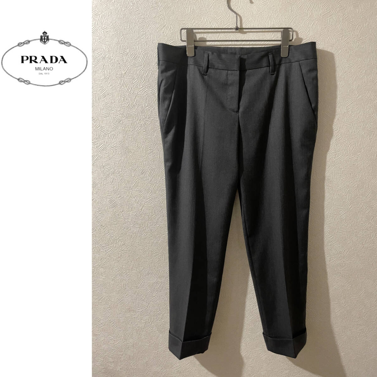 ◯ イタリア製 PRADA テーパード スラックス / プラダ ヘリンボーン スーツ パンツ ダブル グレー 40 S Ladies #Sirchive