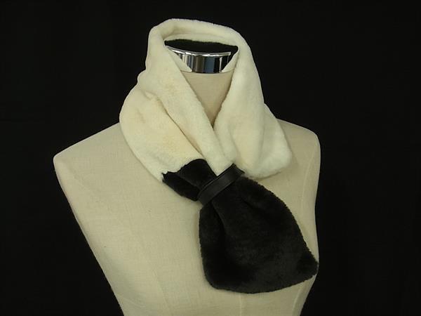 ■新品■未使用■ FURART ファーアート ポリエステル100% ティペット ストール マフラー 防寒具 アイボリー系×ブラック系 DG0762