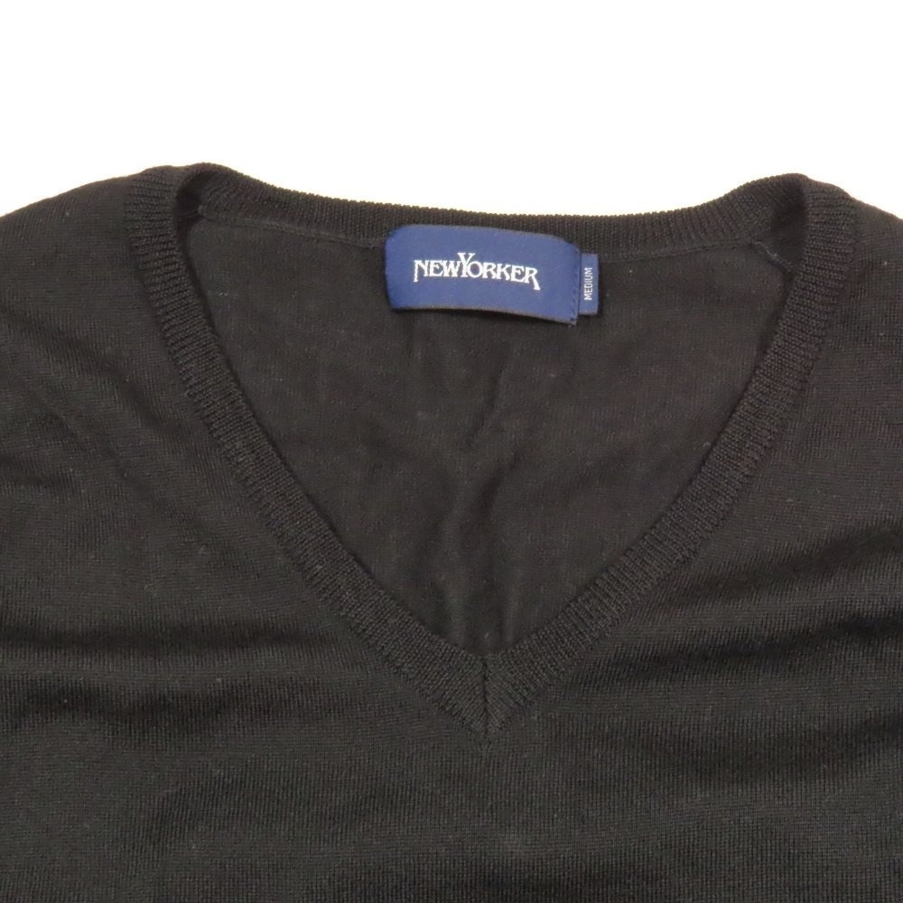 美品 NEWYORKER ニューヨーカー ニット セーター トップス Vネック 長袖 リブ袖 ウール M 黒 ブラック