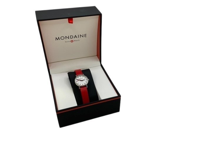 型番・製造番号・サイズ | ・モンディーン MONDAINE エヴァ2 プチ レッド シルバー ケース30301 腕回り:16.5cm |