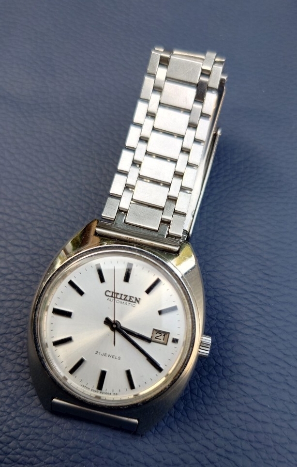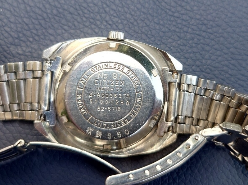 当時シチズンの鉄道時計は、ホーマーなど手巻きの機種が一般的ですが、自動巻のものはほとんど見かけることがありません。かなり珍しいものではないでしょうか。