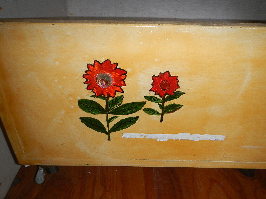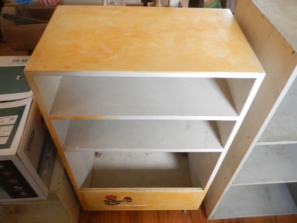手作り収納ラック②(花絵)寸法≒縦980×横600×奥360㎜ ハンドメイド 棚 キャビネット AV収納 工具です。