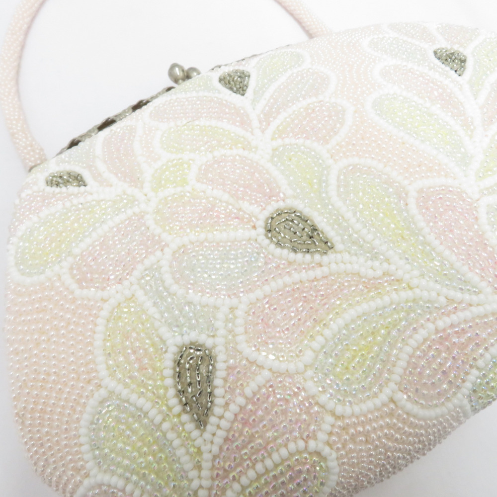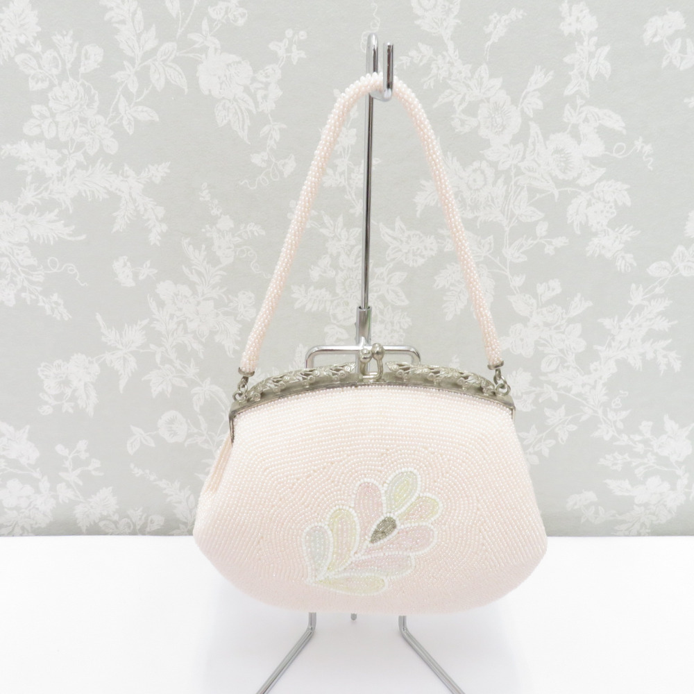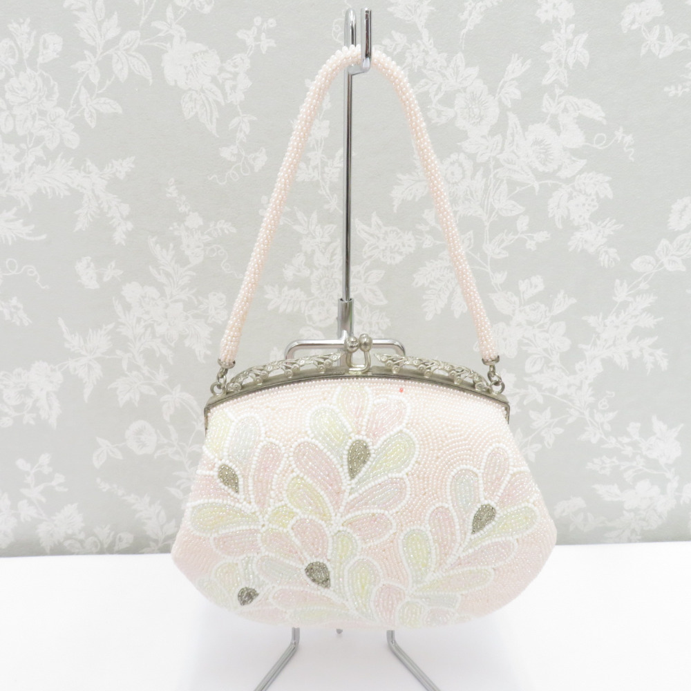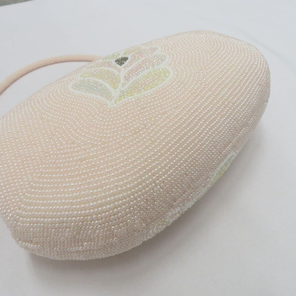 | 和装バッグ ビーズバッグ ベビーピンク系 葉柄 パステル ハンドバッグ パーティーバッグ レトロ 着物バッグ 洋装 和小物 |
