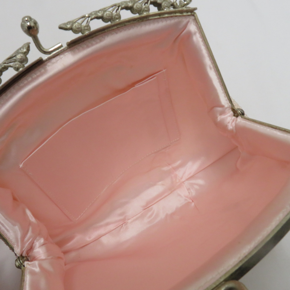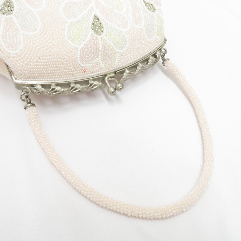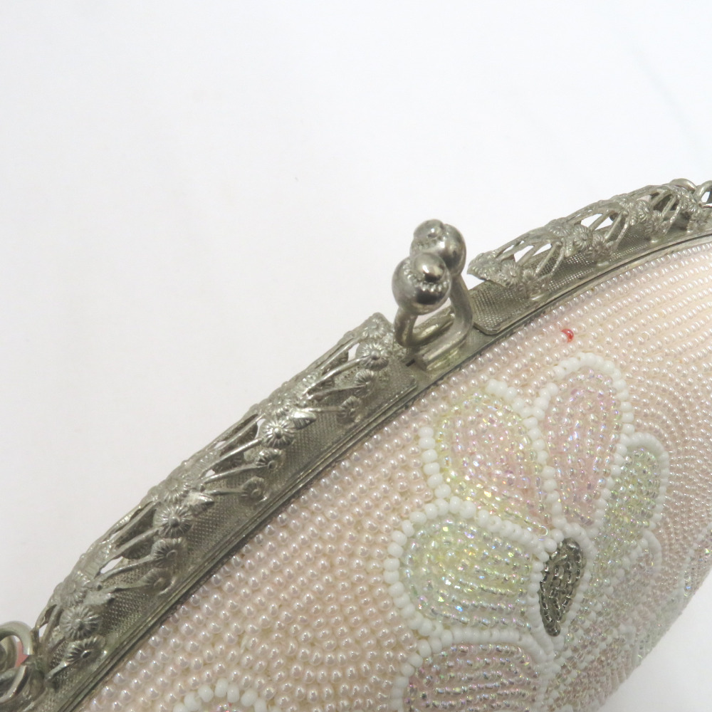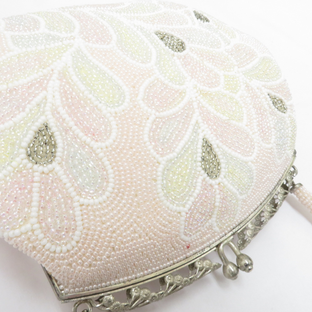 | 和装バッグ ビーズバッグ ベビーピンク系 葉柄 パステル ハンドバッグ パーティーバッグ レトロ 着物バッグ 洋装 和小物 |