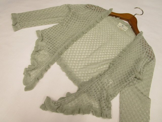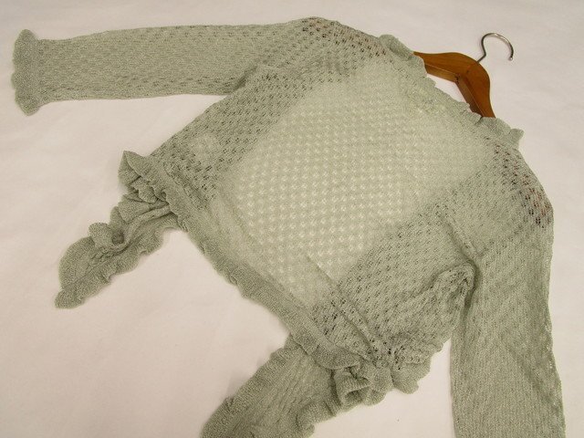 長袖 洗えるニットボレロ S2 グリーン系地 シルバーラメ入り 【メール便可】