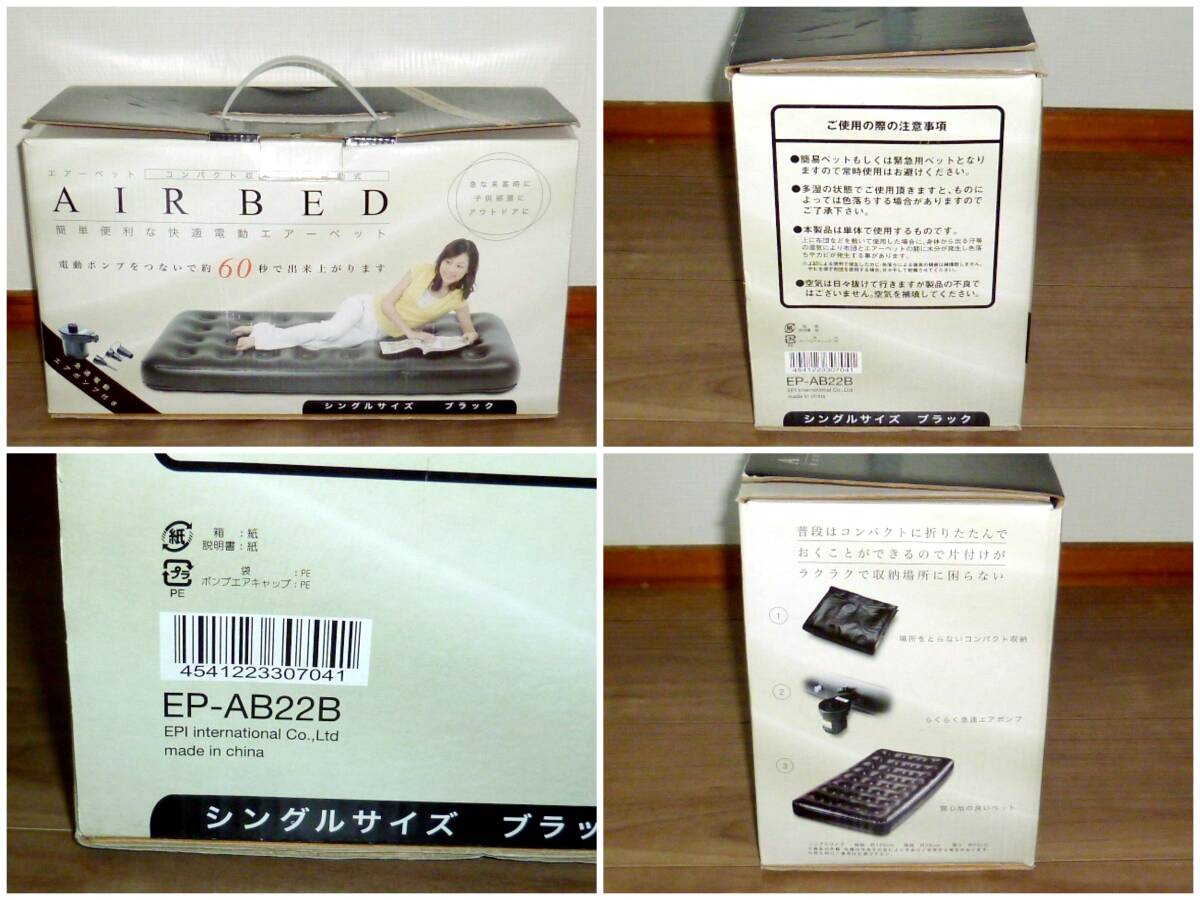 中古★電動ポンプ付き シングルサイズ エアーベッド★EP-AB22B★AIR BED★一度のみ使用★黒色★