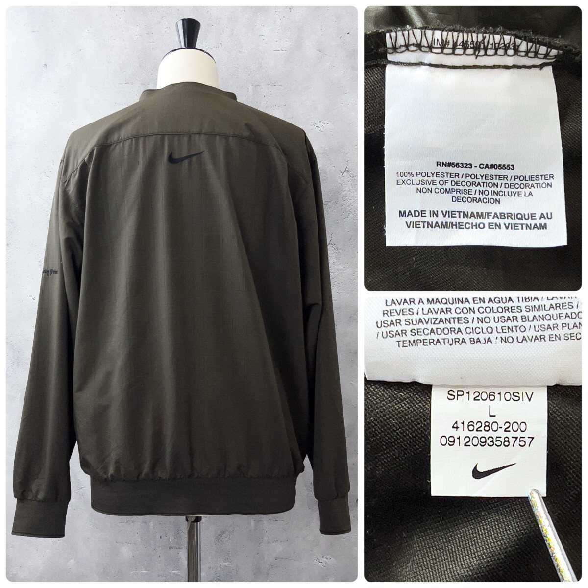 NIKE GOLF ナイキ ゴルフ Vネック 長袖 スニード プルオーバー ナイロン ジャケット ウインドブレーカー メンズ L カーキ ゴルフウェア