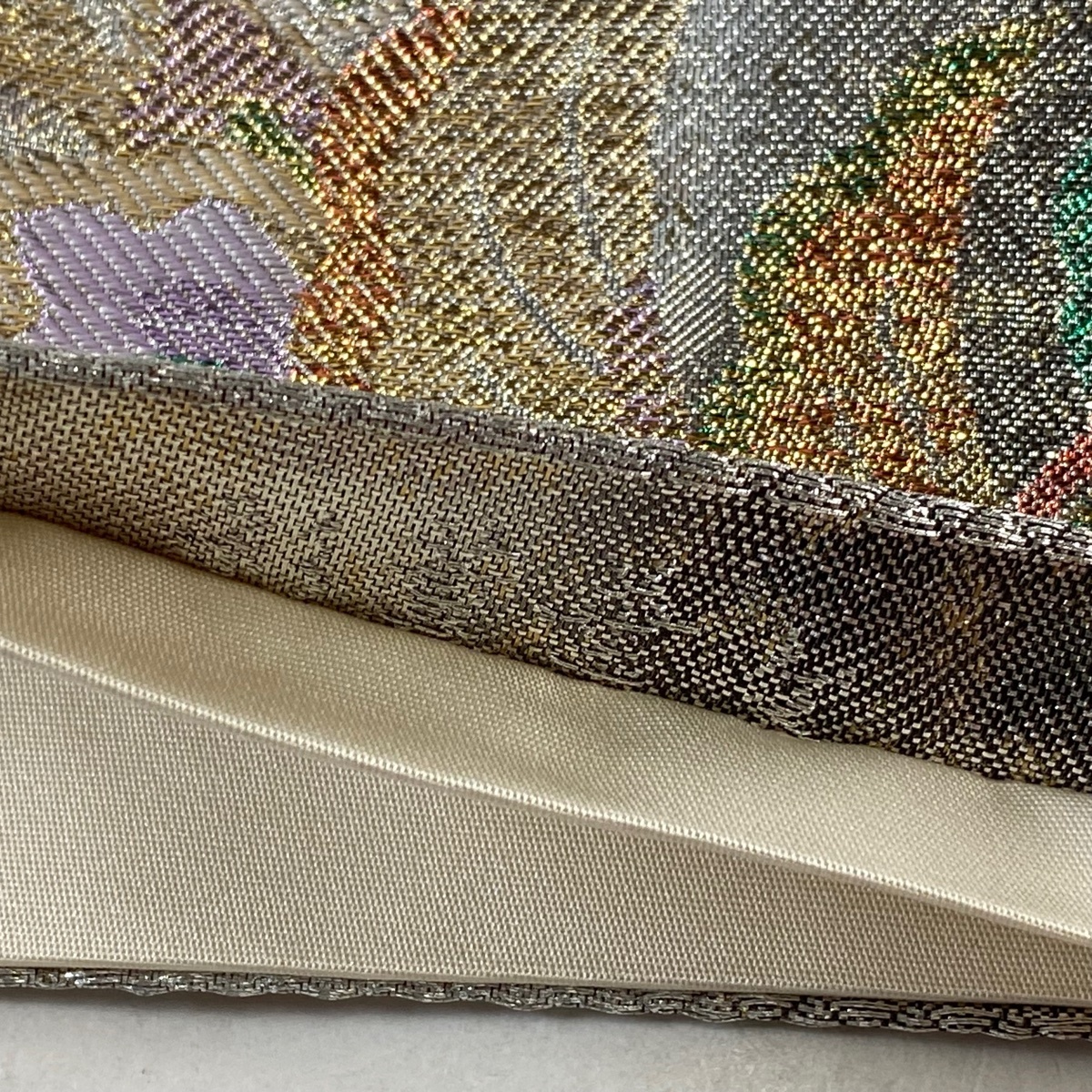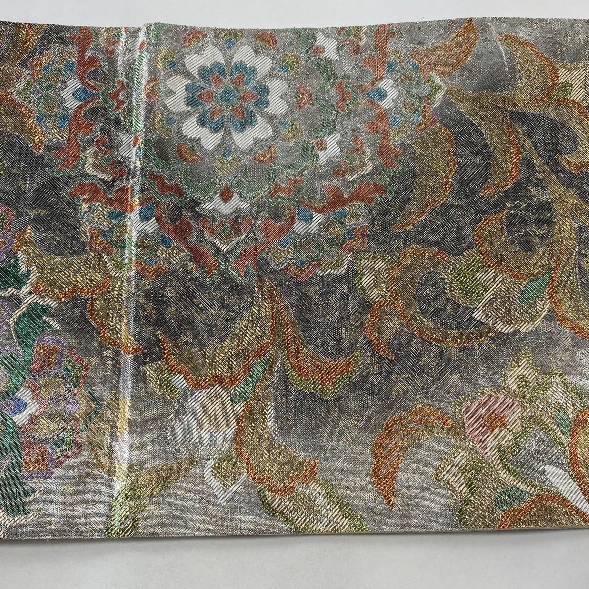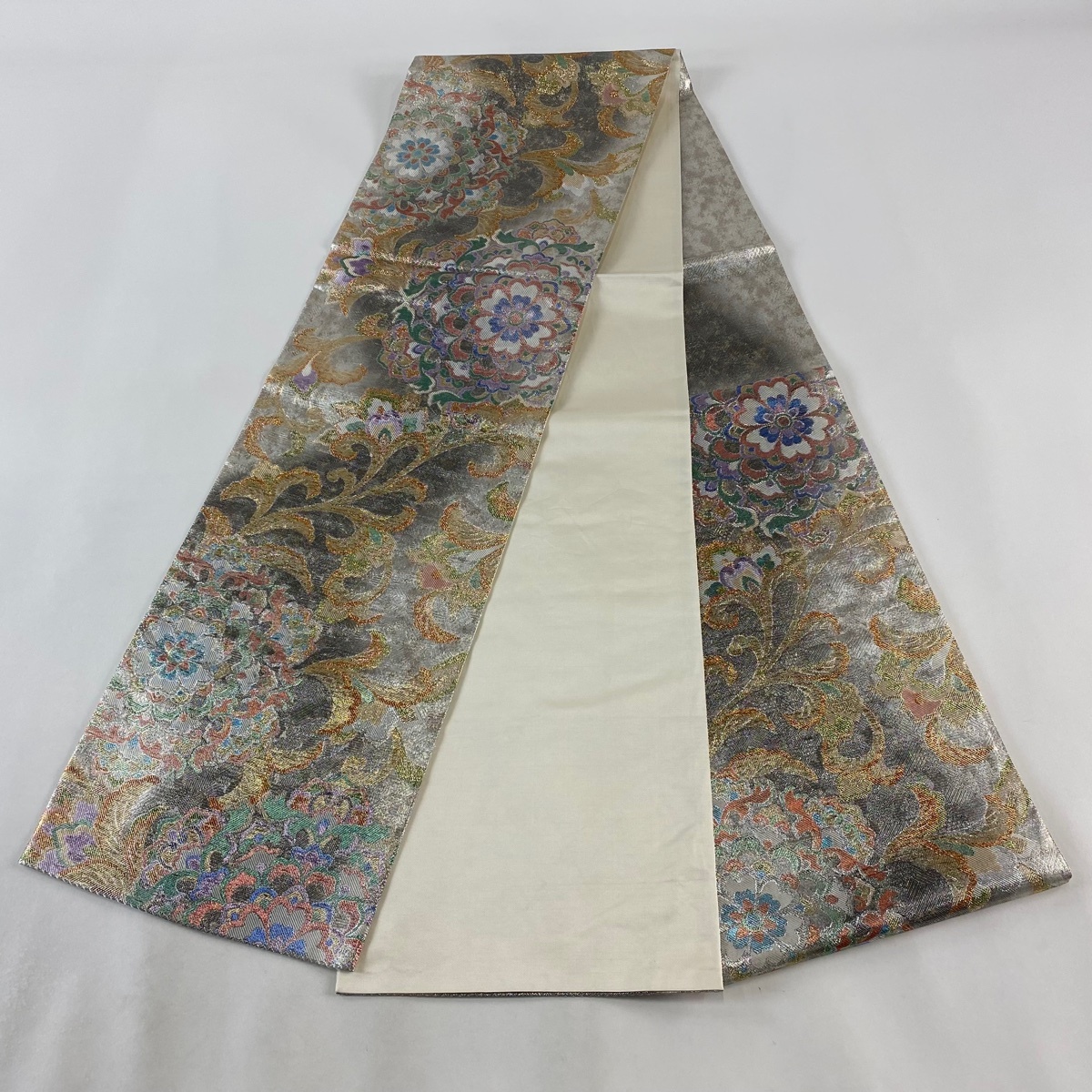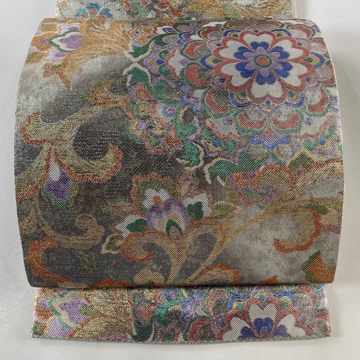 | 袋帯 秀品 華文 花唐草 箔 銀色 六通 正絹 【中古】 |
