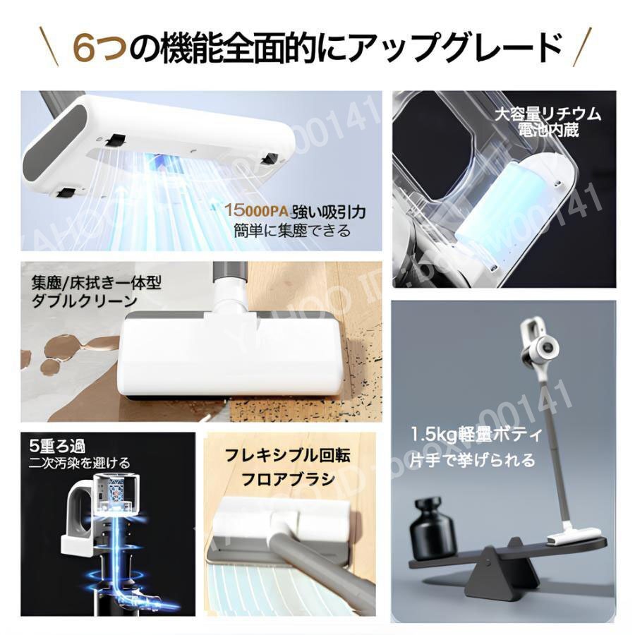 スリムで軽量ながら、パワフルな吸引力を実現したコードレス掃除機です。省エネかつ軽量で長寿命の高性能強力モーターを搭載しているため、吸引力15000Paでパワフルな吸引力を実現し,ゴミ、ホコリ、粉など、どんどんゴミが吸い取られていきます。吸引口に逆流防止弁がついているためゴミが逆流してくることもありません。