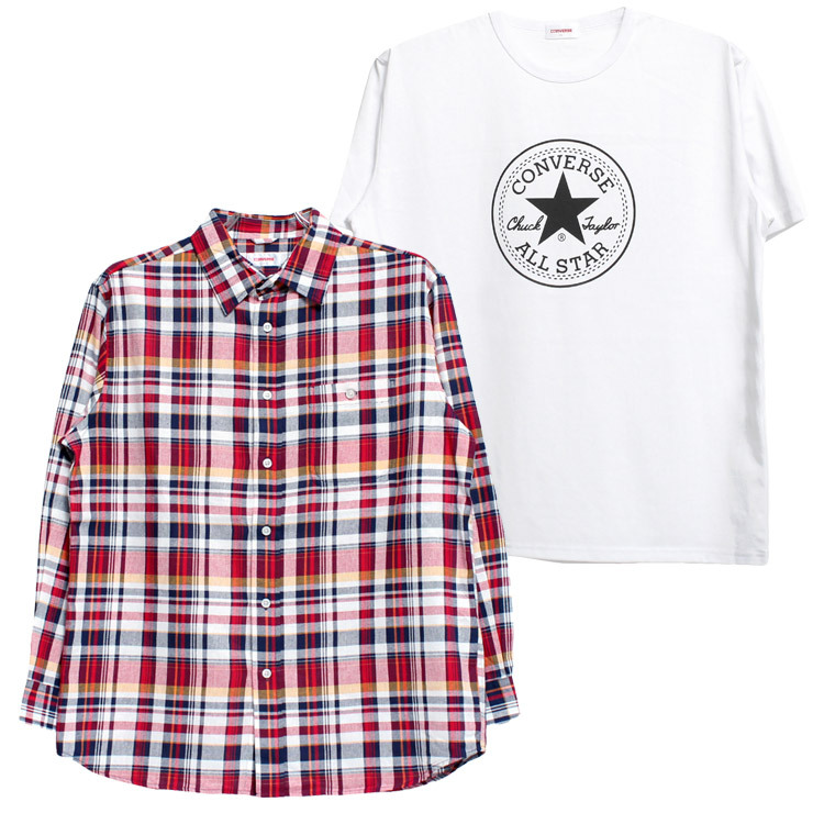 | 商品名 | 【新品】 4L レッド コンバース(CONVERSE) 長袖シャツ メンズ 大きいサイズ コットン プリント 半袖 Tシャツ アンサンブル ストライプ チェックシャツ |