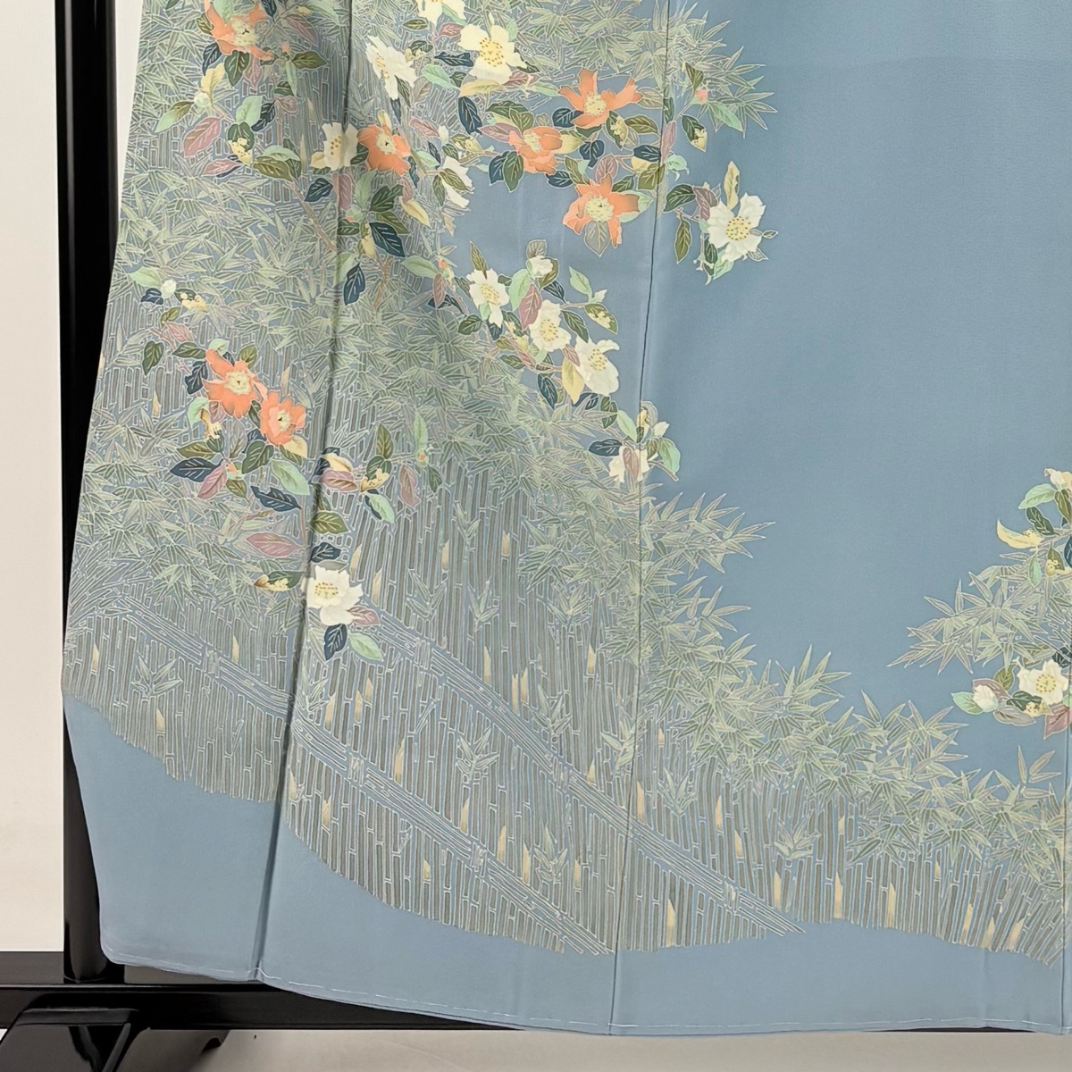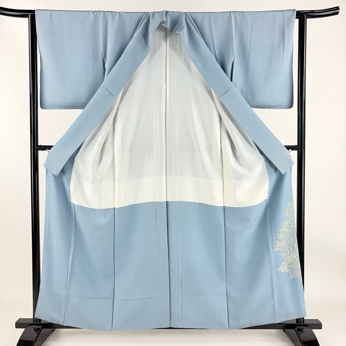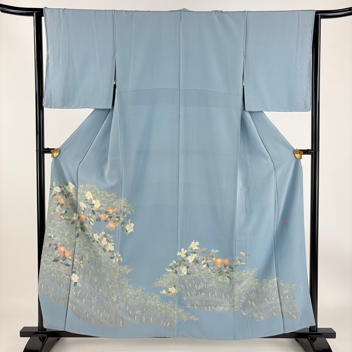 | 色留袖 逸品 柿本市郎 落款 加賀友禅 草花 竹垣 水色 袷 身丈159.5 裄丈63 S 正絹 【中古】 |