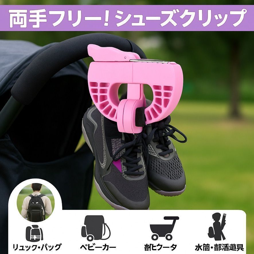 子どもの靴やベビーグッズを、ベビーカーやバッグにサッと取り付け!