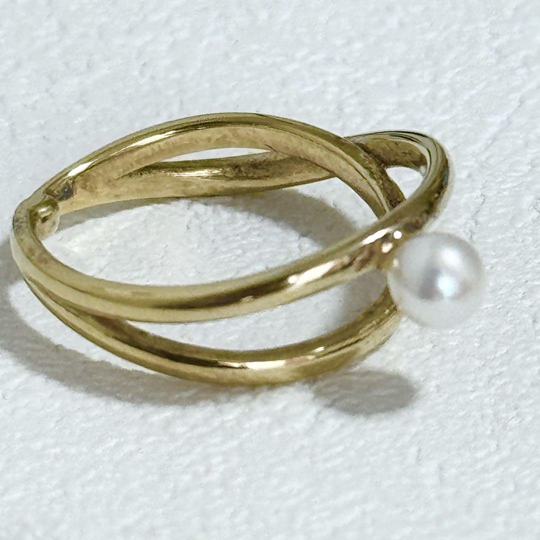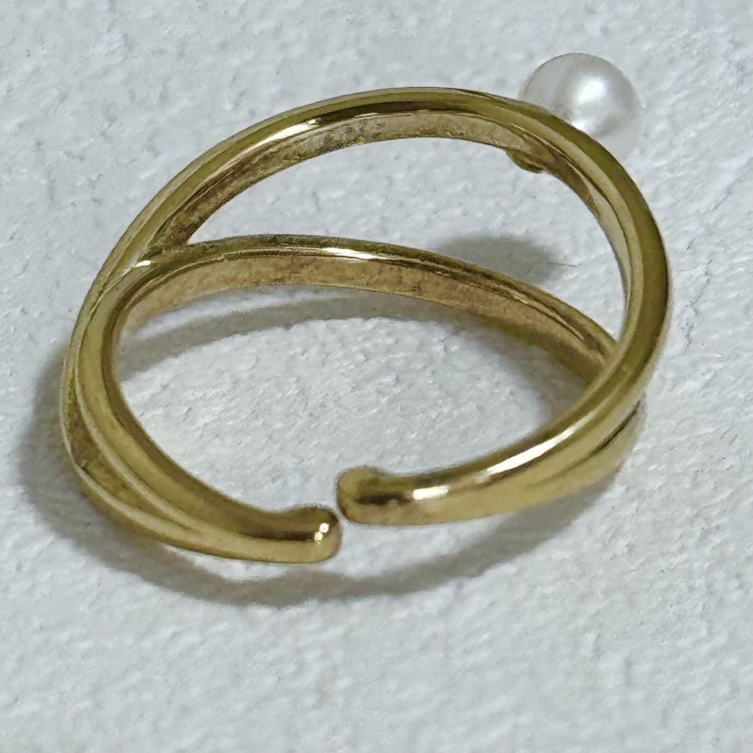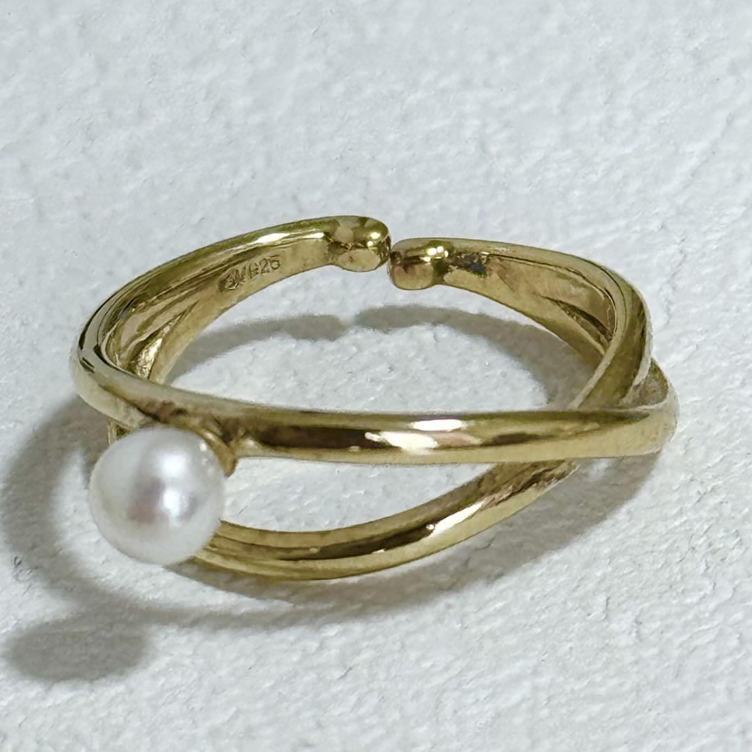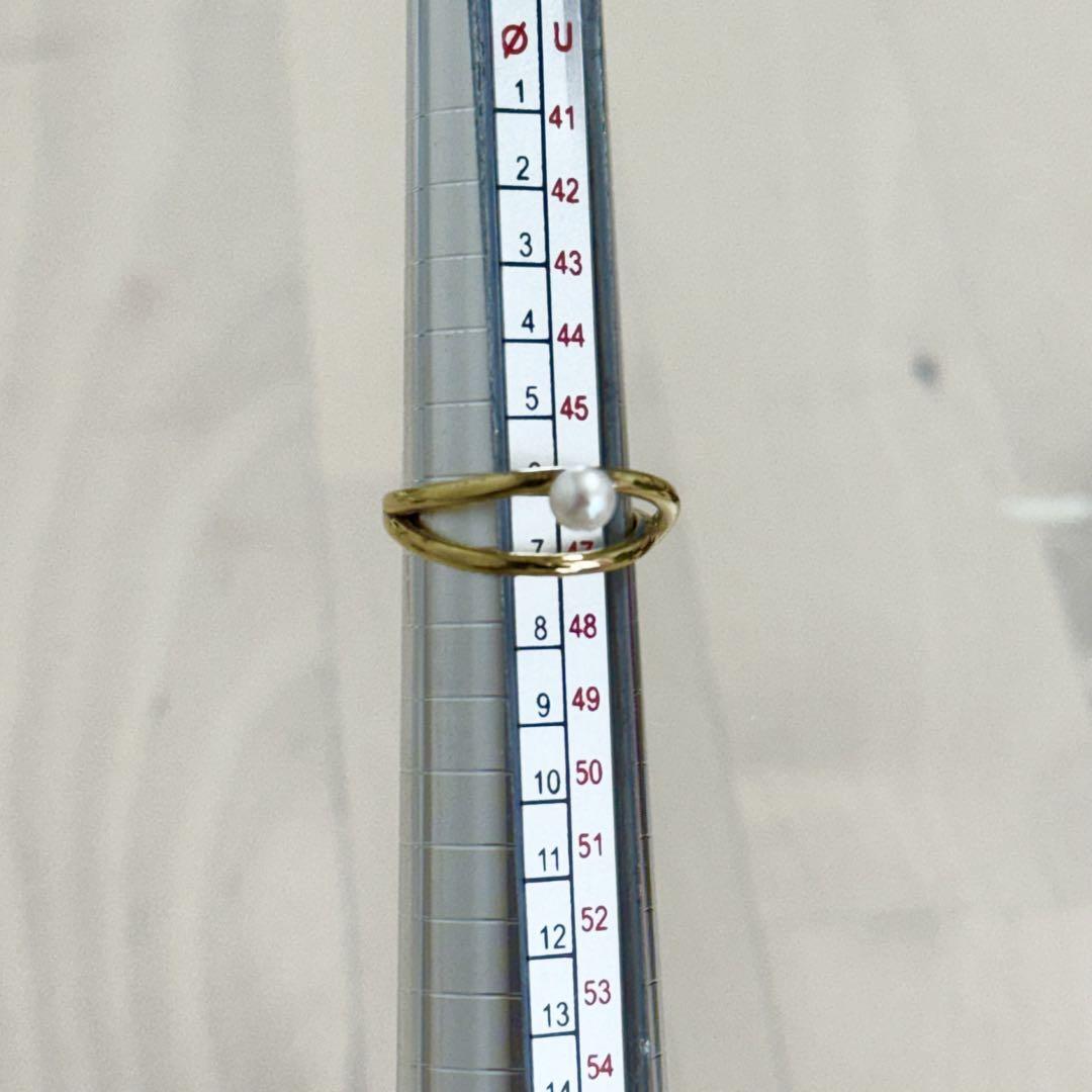 立体的に重なったようなフォルムに、片側にパールをあしらった上品なデザイン。