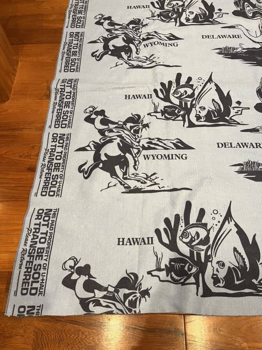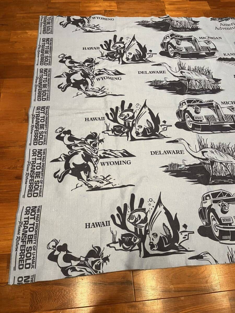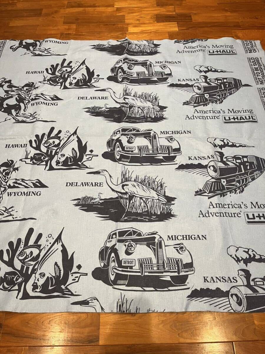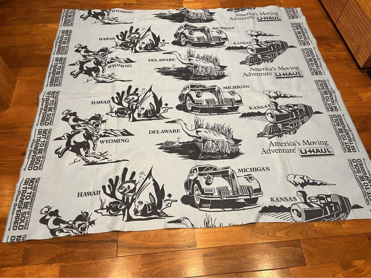 ビンテージU-HAULのブランケットです。おおよそのサイズ200cm×190cmでほぼ正方形な感じです。