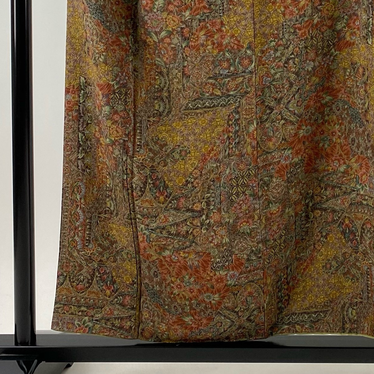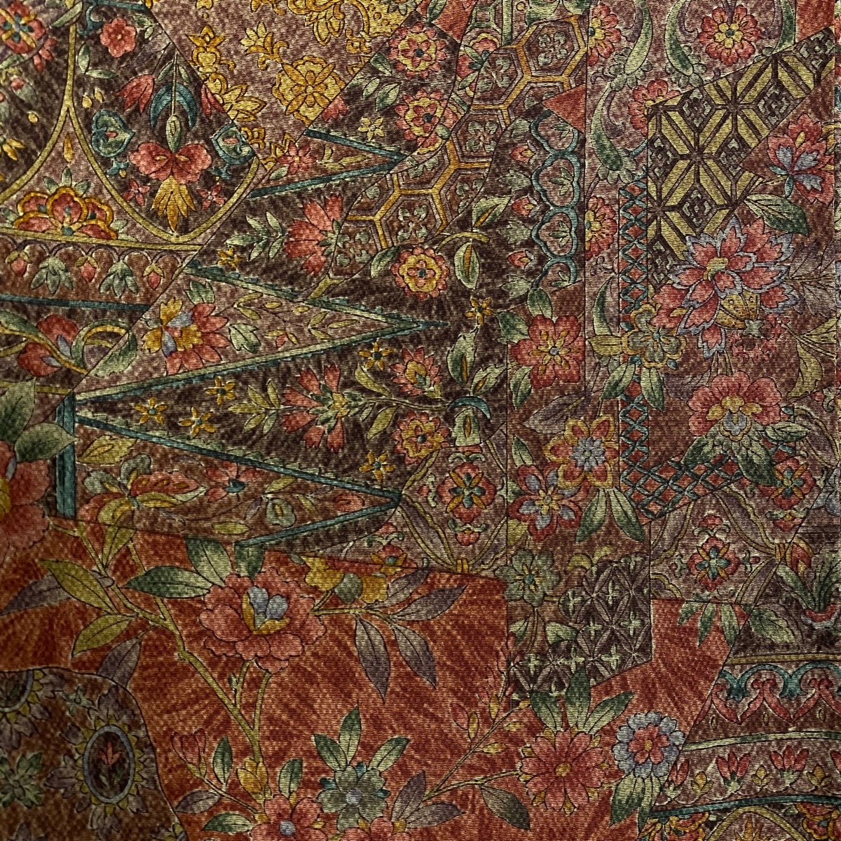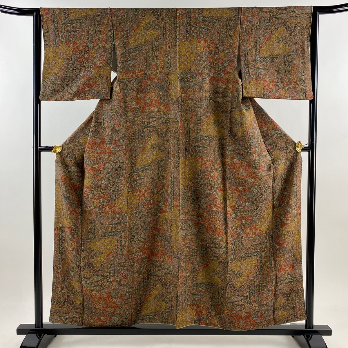 | 小紋 秀品 草花 亀甲 縮緬 赤茶 袷 身丈155 裄丈64 M 正絹 【中古】 |