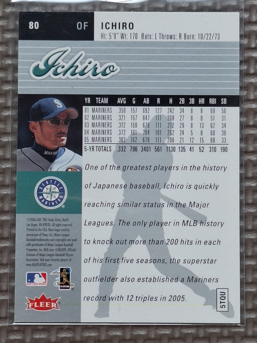 2006 Fleer Ultra #80 ICHIRO SUZUKI Seattle Mariners Orix BlueWave