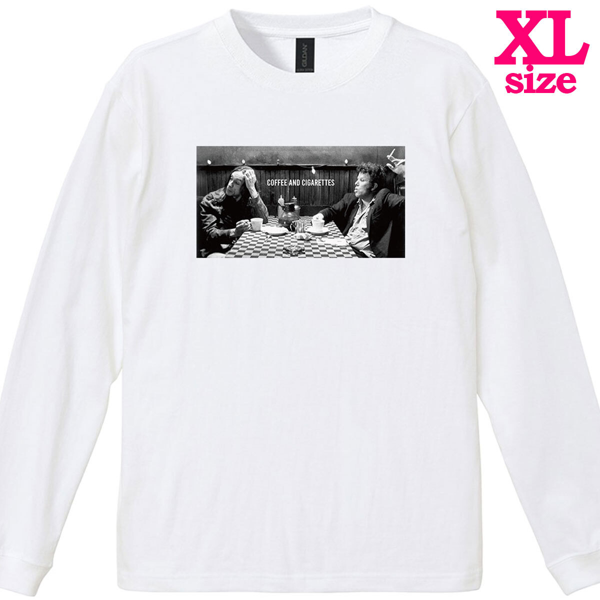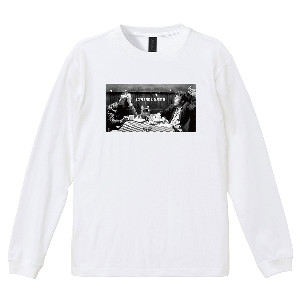 コーヒー アンド シガレッツ 柄 フォトプリント リブ付き 長袖 Tシャツ ロンT カジュアル 6.0oz コットン100% ユニセックス XL
