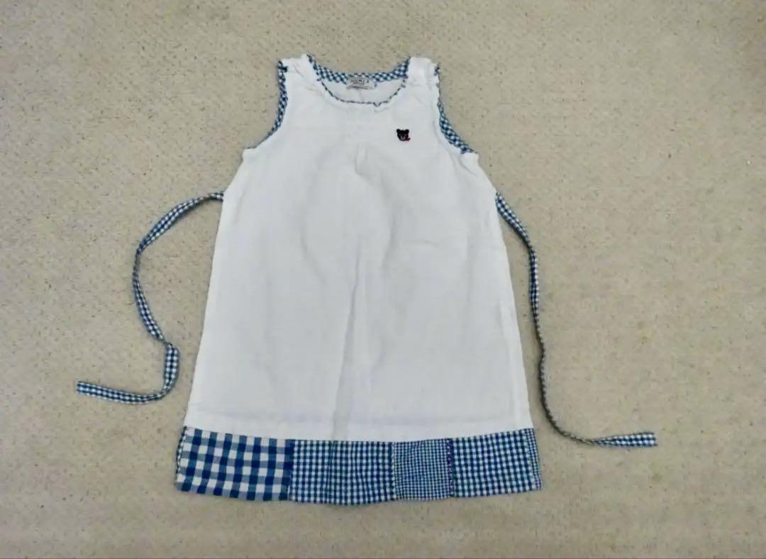 | ■ミキハウス ダブルB ダブルビー Miki House DOUBLE.B★可愛い ノースリーブ ワンピースになります。 ■お色はホワイト×ギンガムチェック柄になります。 サイズ表記は110です。実測サイズ:肩幅約21㎝、身幅約33㎝、着丈約54㎝ 素材: 綿100% ■左胸にクマの刺しゅうがあり、首回り&ノースリーブの縁&丈にギンガムチェック柄になっています♪ ■写真の4枚目、5枚目に小さな黄色の点がありますが、あまり気にならない程度かと思います。目立つようなシミ・汚れなどはなく、着用感も少なく、全体的綺麗な状態です。美品ですが、USEDとして上記の状態をご理解いただける方のご入札をお願いします。 | |||