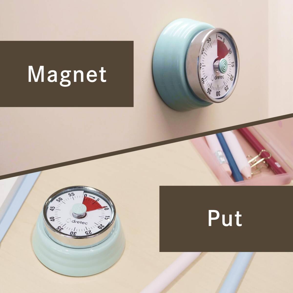 ドリテック(dretec) ダイヤルタイマー アナログタイマー キッチン レトロ 可愛い 勉強 料理 大音量 マグネット 自動停止 最大60分測