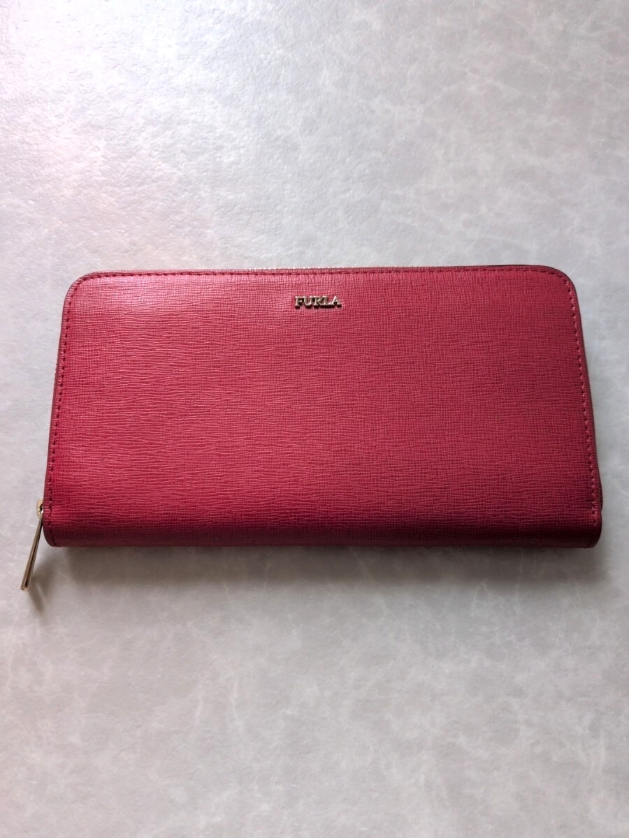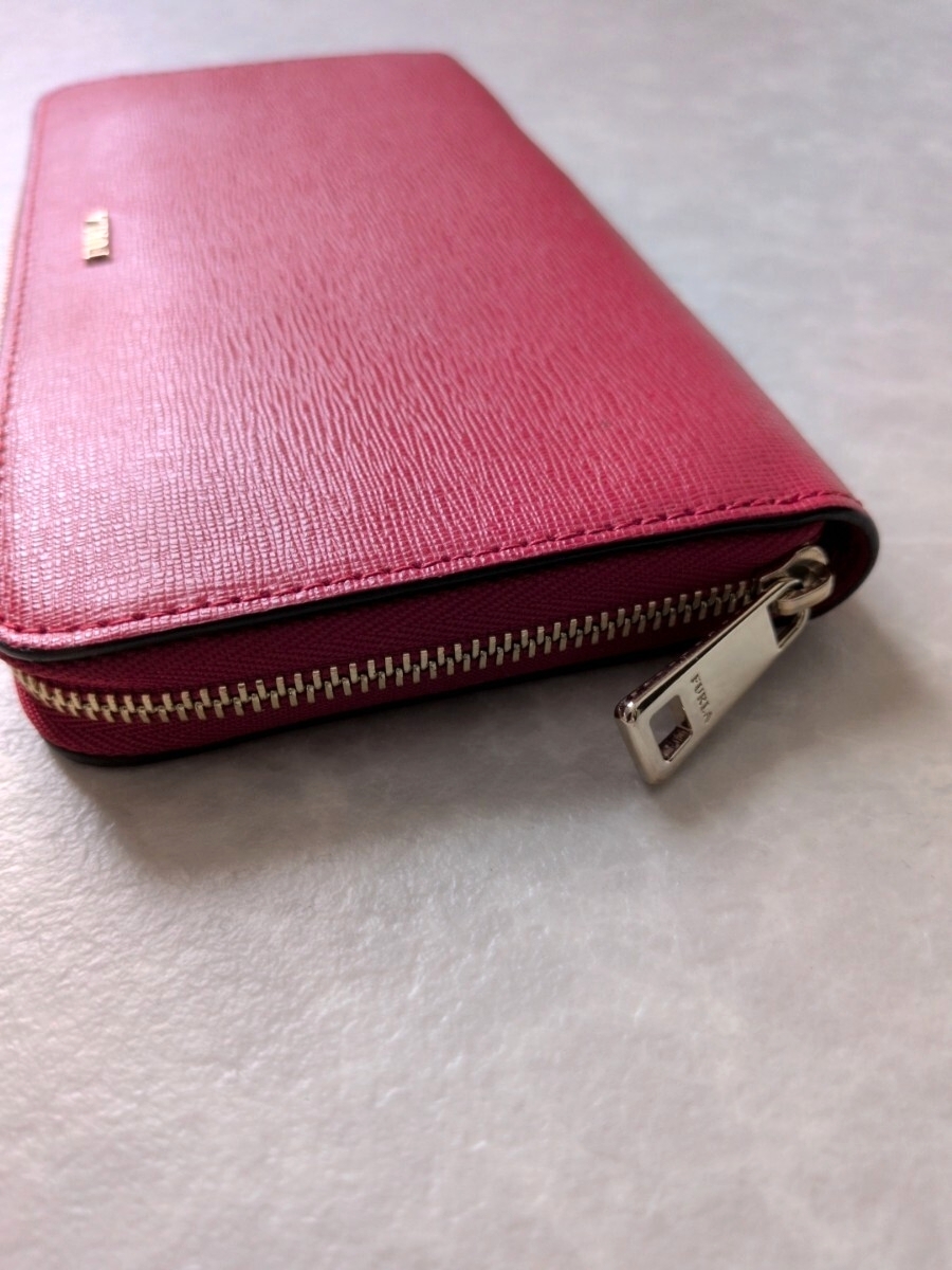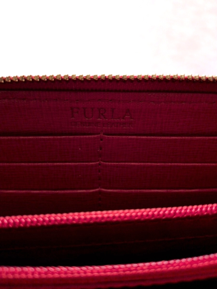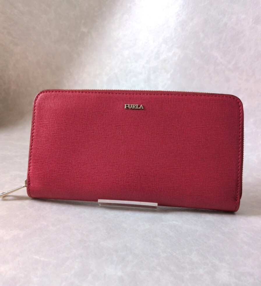●新品同様●FURLA フルラ レザー ラウンドファスナー 長財布 ウォレット 札入れ 小銭入れ カード入れ レディース レッド系