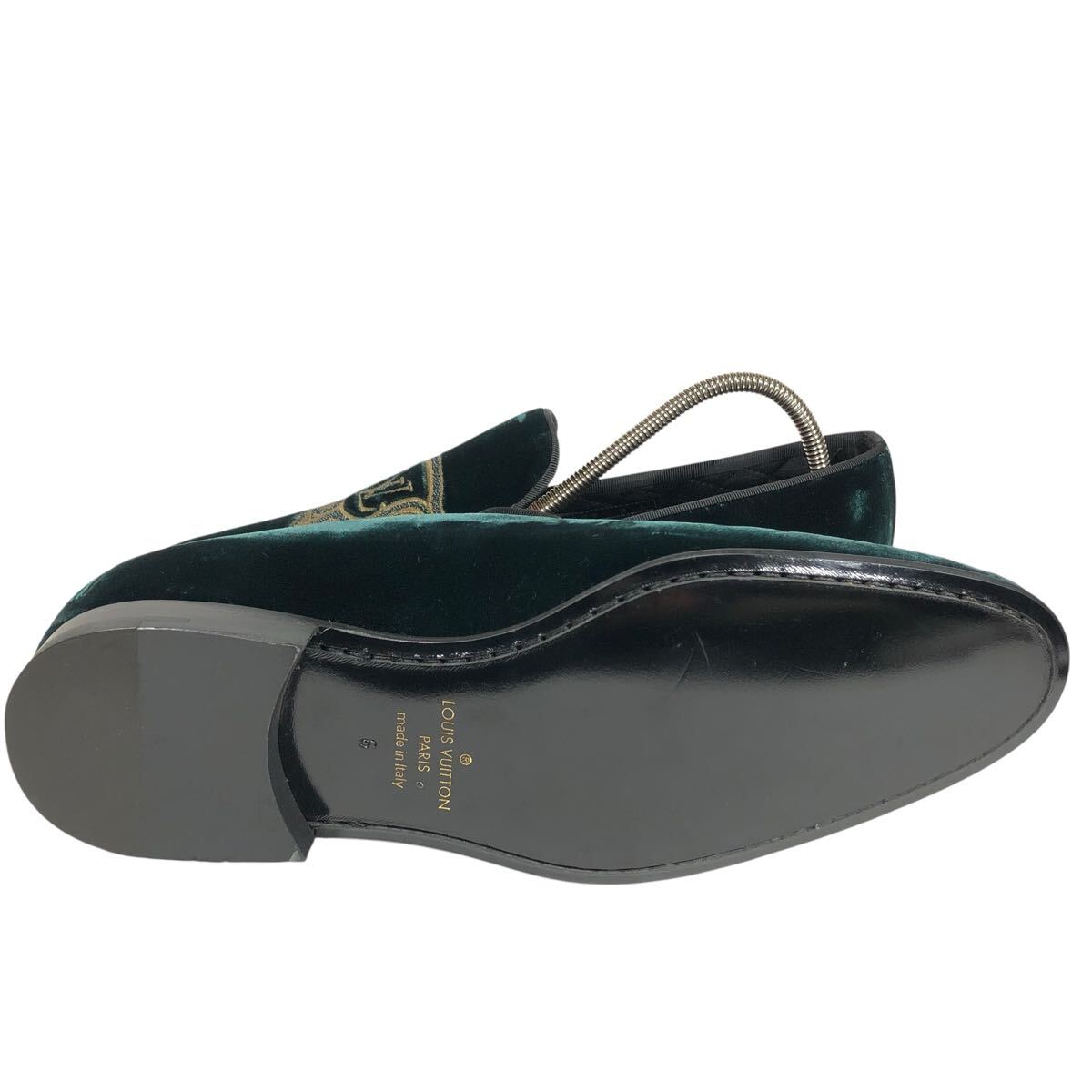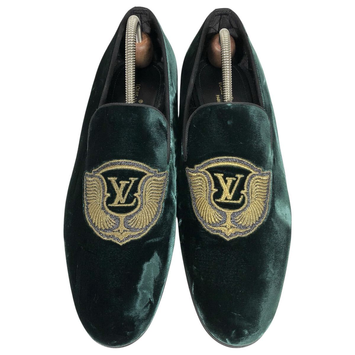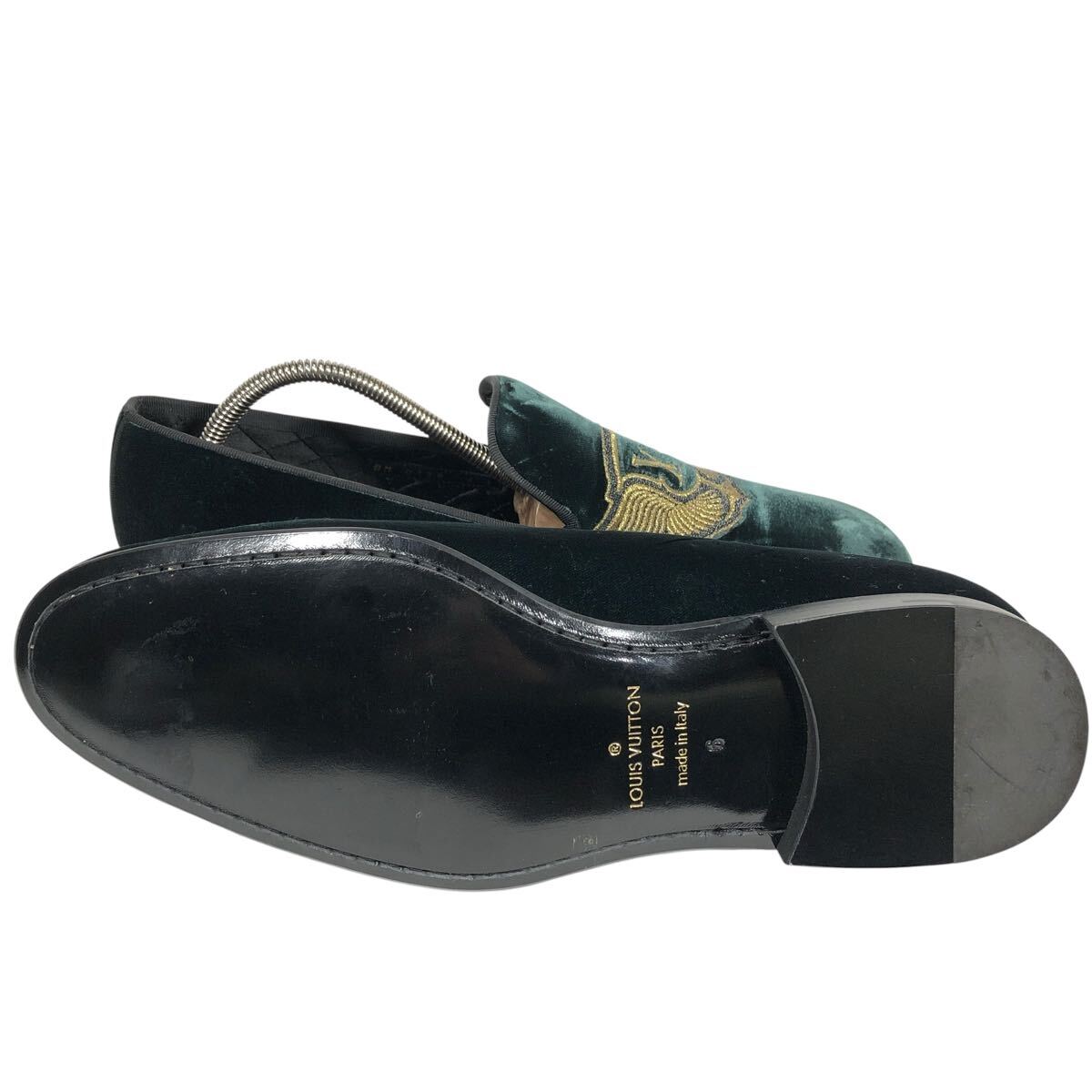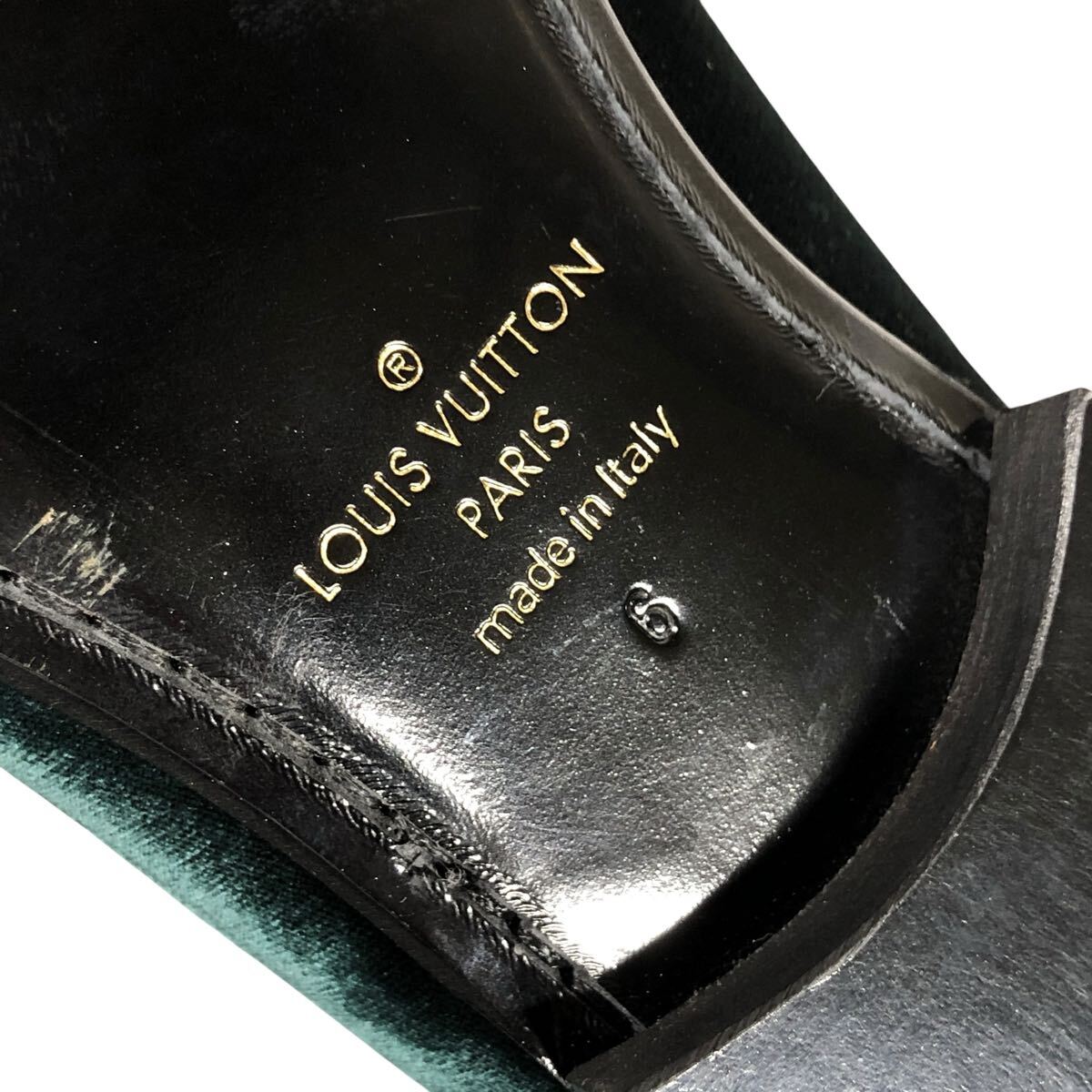 未使用品【ルイヴィトン】本物 LOUIS VUITTON 靴 25cm オートゥイユライン LVロゴ刺繍 オペラシューズ ローファー ベロア メンズ 伊製 6