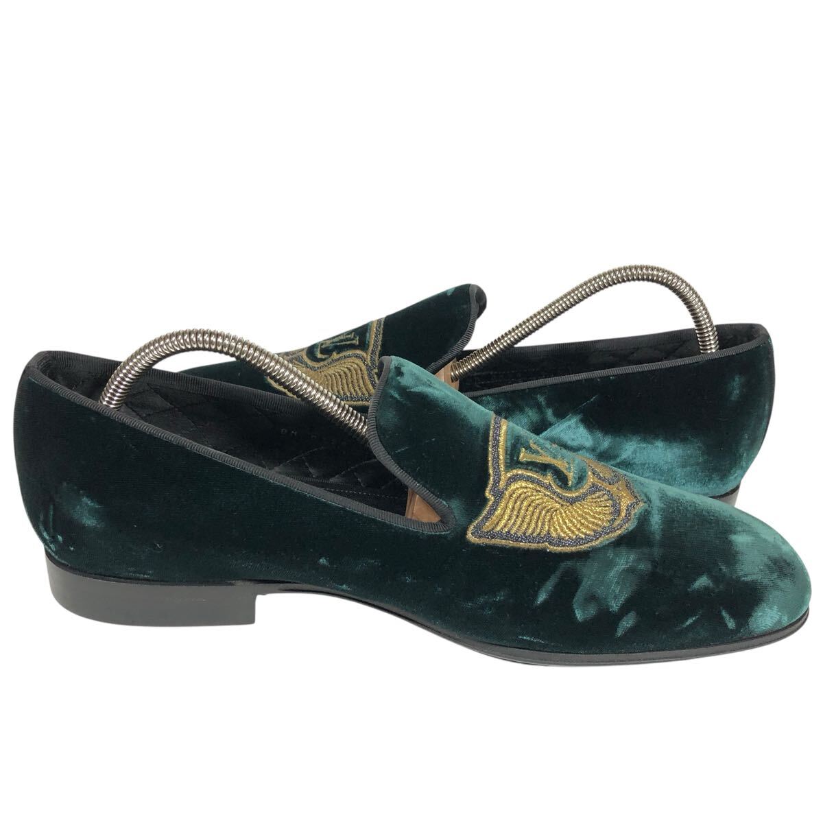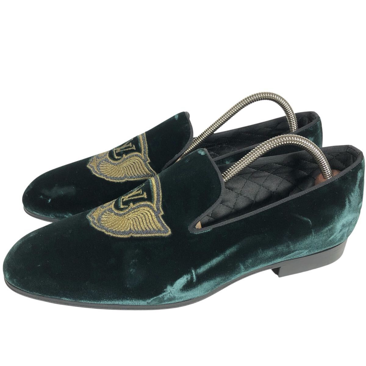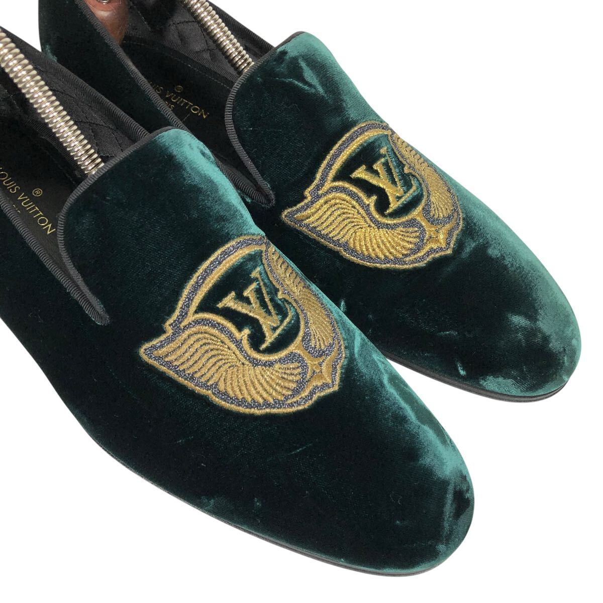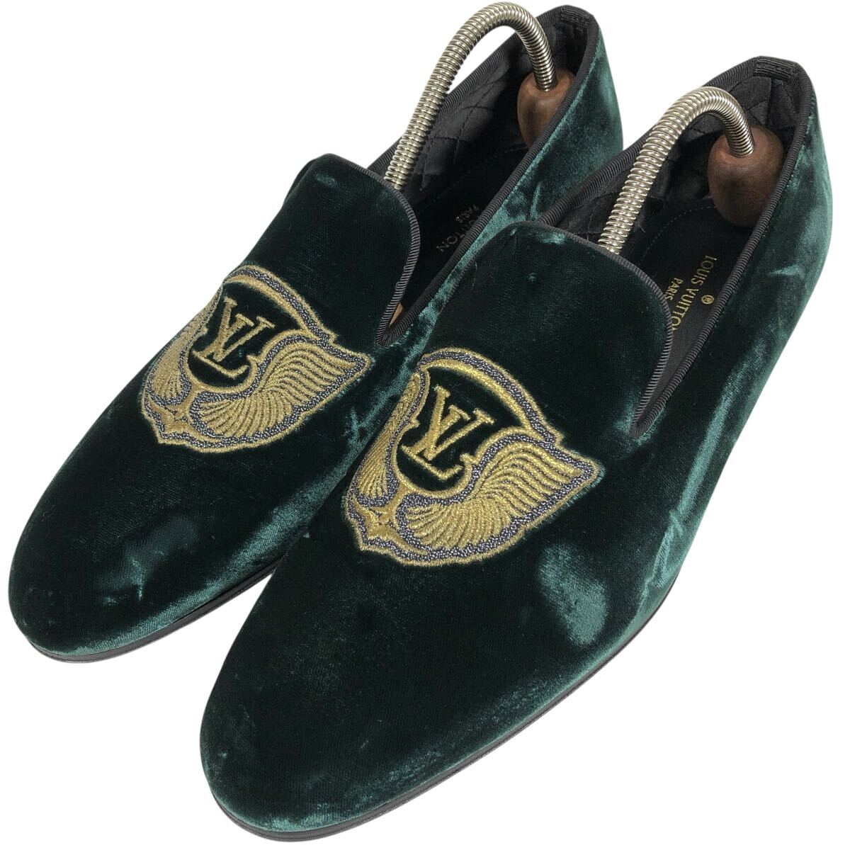 未使用品【ルイヴィトン】本物 LOUIS VUITTON 靴 25cm オートゥイユライン LVロゴ刺繍 オペラシューズ ローファー ベロア メンズ 伊製 6