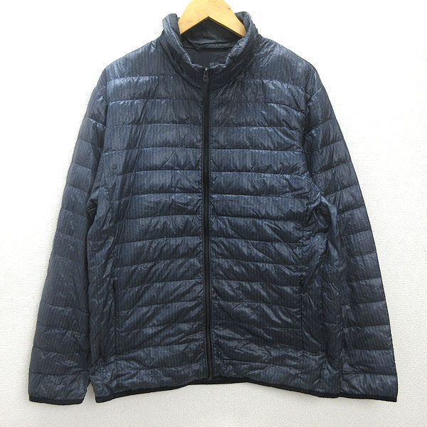 D■ユニクロ/UNIQLO ウルトラライトダウンジャケットJKT/ストライプ■濃灰【XL】MENS/6S【中古】■
