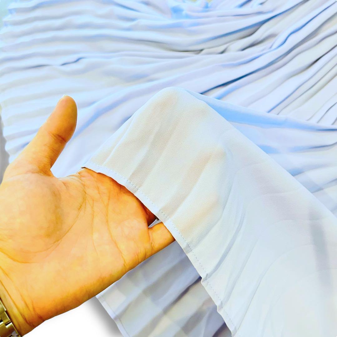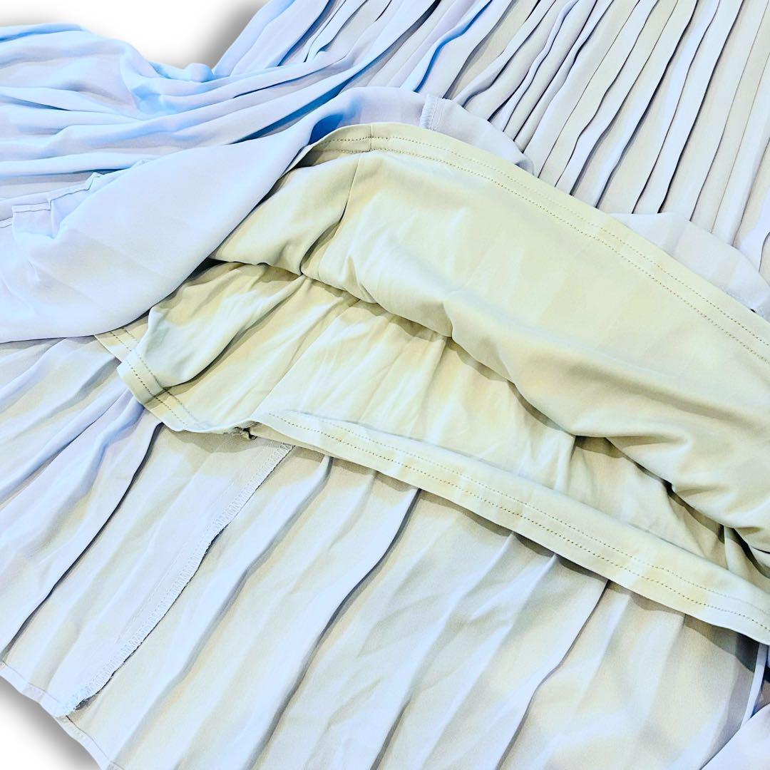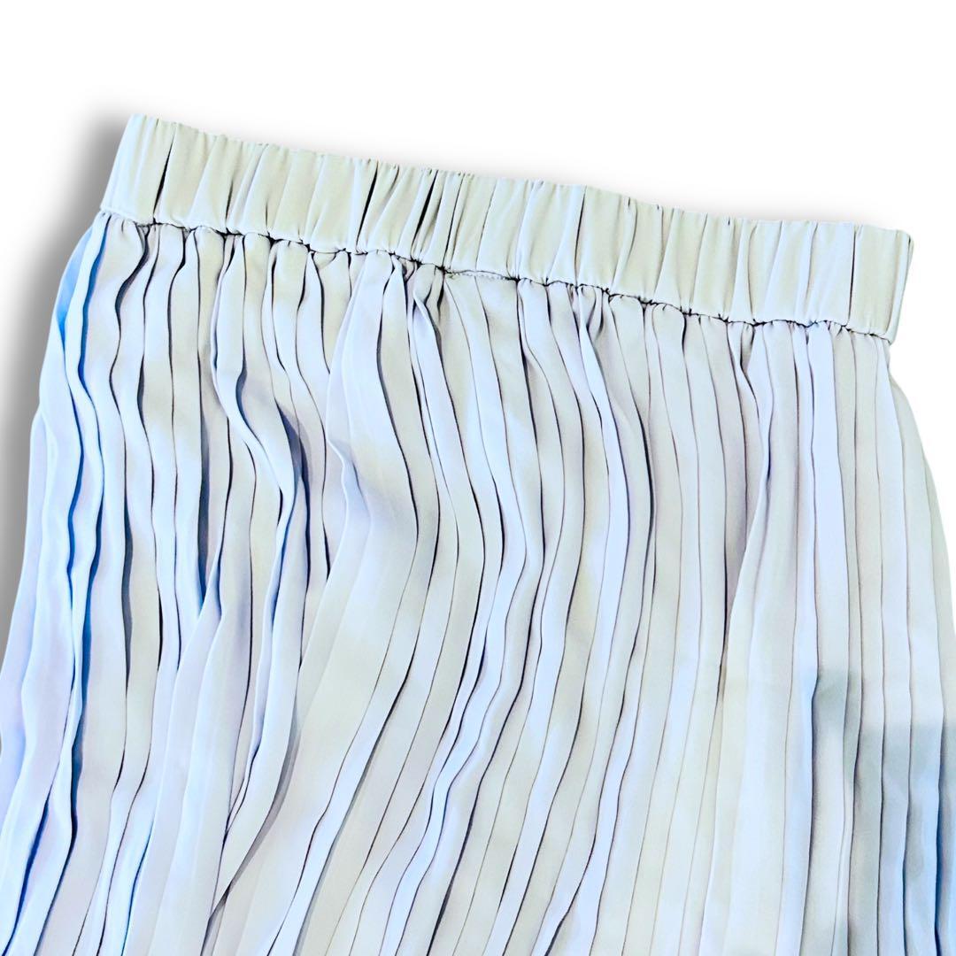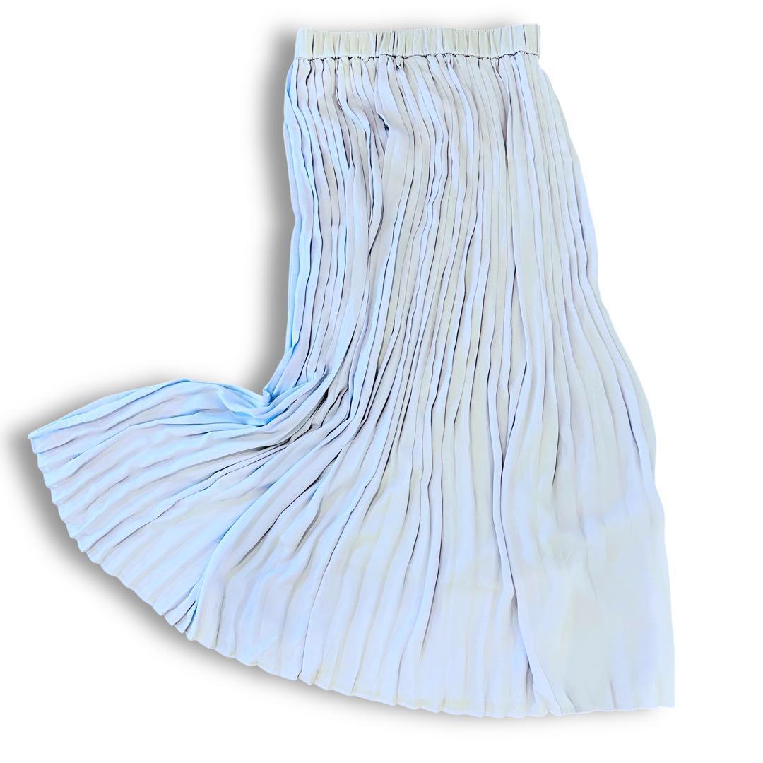 ふんわりと揺れるプリーツが女性らしさを引き立て、爽やかなライトブルーがコーデを明るく見せてくれるロングスカートです。