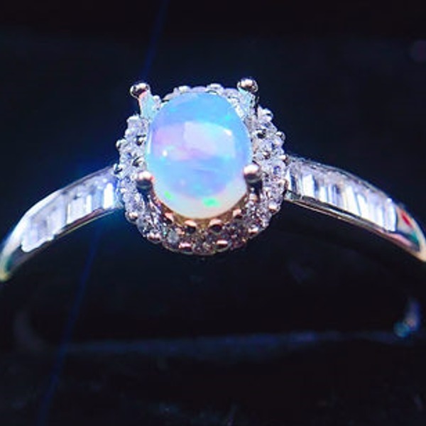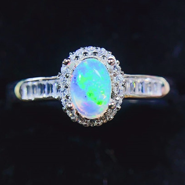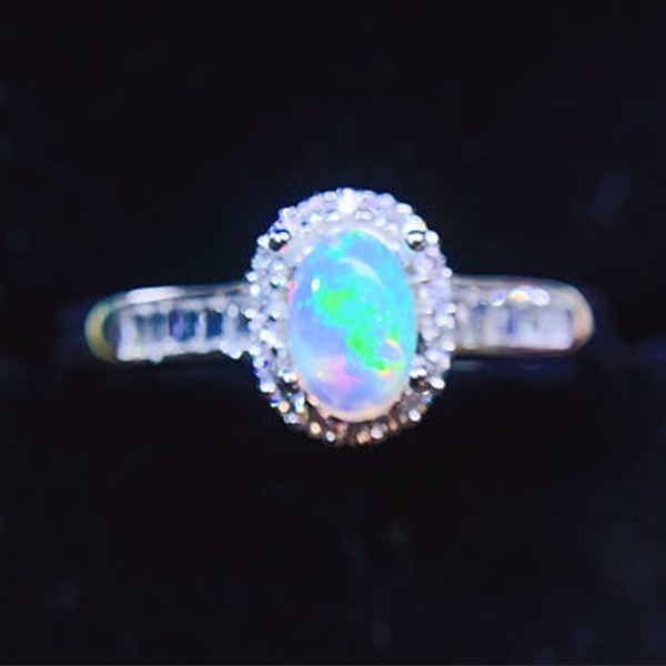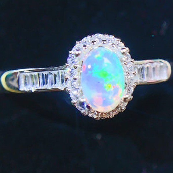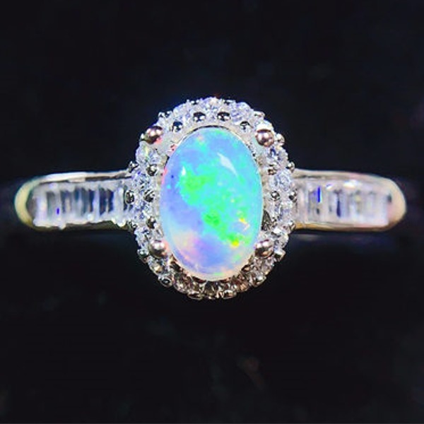 女性用オーストラリア オパールエンゲージリング、4x6mm、楕円形,ファインジュエリー