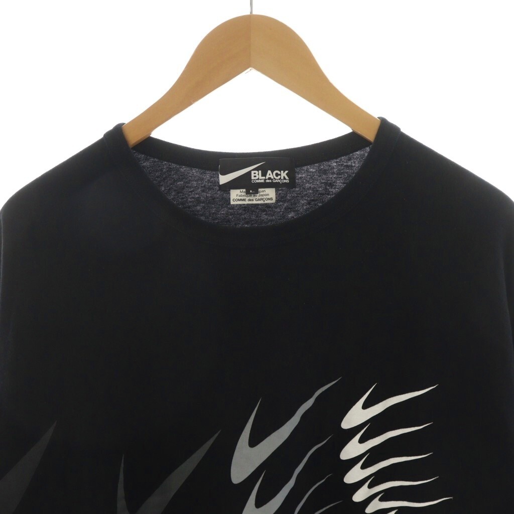 コムデギャルソンブラック COMME des GARCONS BLACK × ナイキ NIKE スウッシュ AD2024 Tシャツ カットソー 半袖 ロゴ L 黒