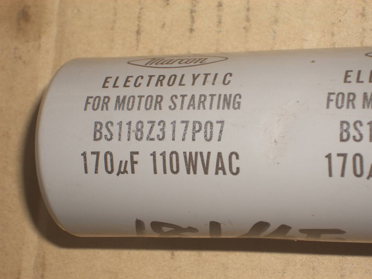 170μファラッド、110WVAC、端子部を除いた大きさは直径36ミリ、長さ83ミリ、容量は確認済みです。