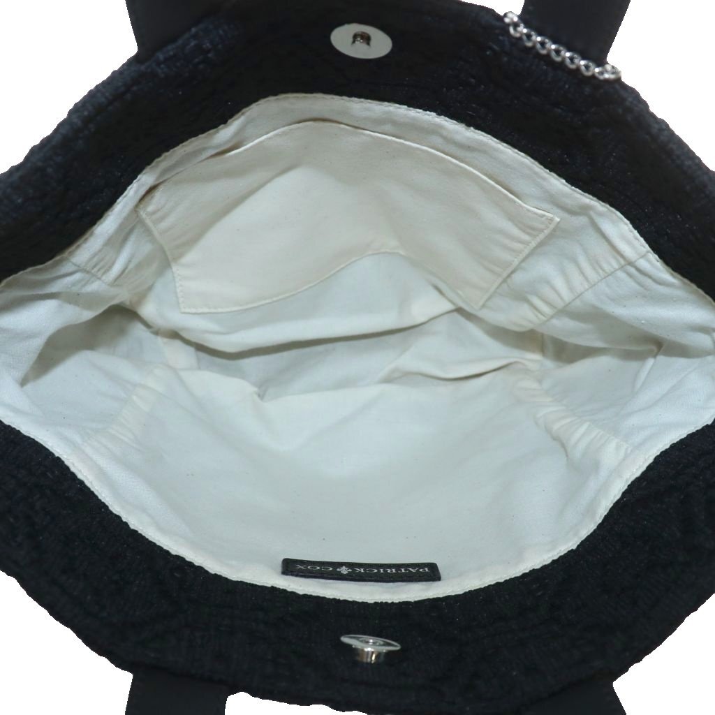 パトリック コックス PATRICK COX クロッシェレース ハンドバッグ トート 総柄 マグネット チャーム付き 黒 ブラック