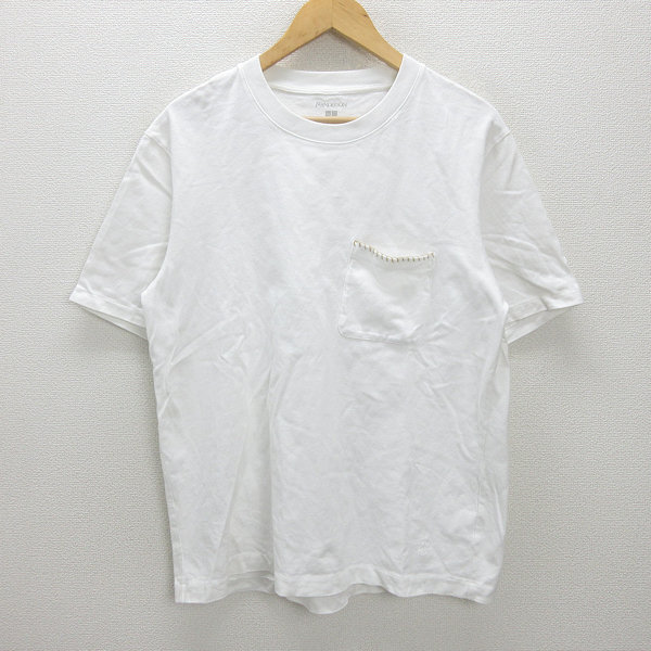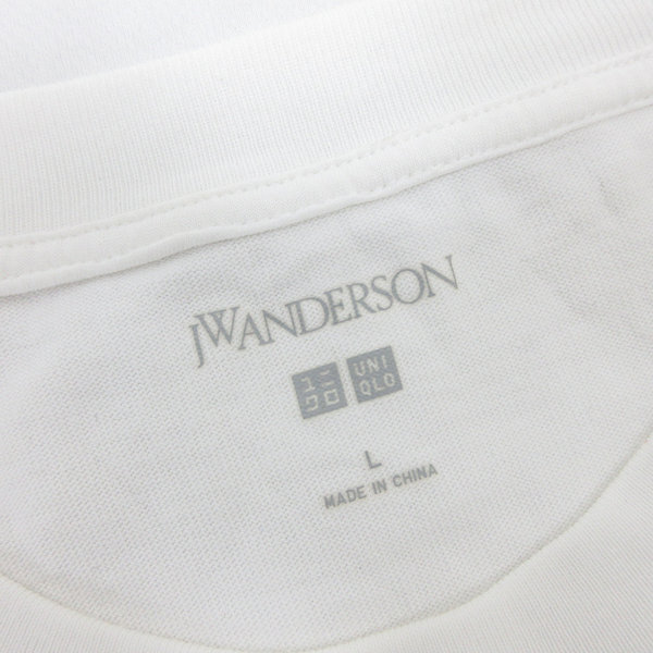 G■ユニクロ/UNIQLO JW ANDERSON ブランケットステッチT シャツ/341-440399【L】白/men's/87【中古】■