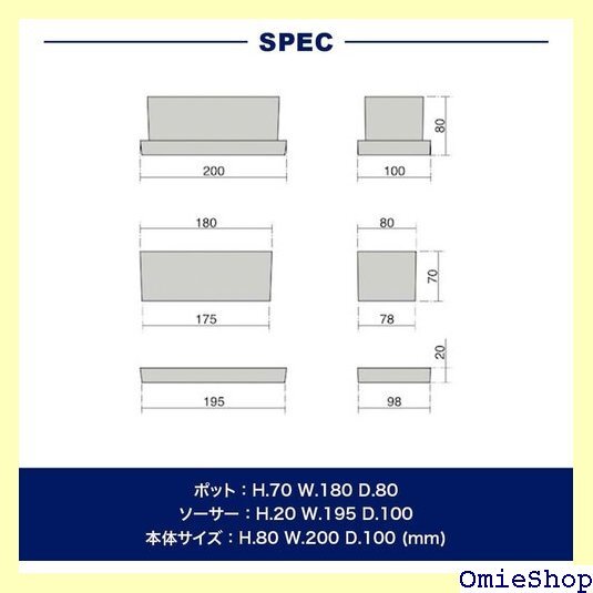 サイズ : S、高さ80×幅200×奥行100mm、ポット : 高さ70×幅180×奥行80mm、受皿 : 高さ20×幅195×奥行100mm