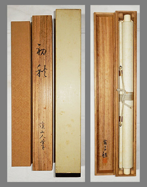 ・掛軸の軸先ですが、細心の注意を払って梱包しておりますが、 配送中の振動・気温・経年劣化等で外れてしまうことがあります。 軸先の外れは、破損ではございませんので、返品の対象にはなりません。 大変お手数ですが、お客様ご自身での修復をお願い致します。 ・添付写真の画像と説明文でご理解頂ける方、ご入札を宜しくお願い致します。 ・添付写真の画像は撮影の光度により、現物と若干の色合いの相違が生じる事があります。 ・添付写真の画像は受取完了のご連絡を頂いた後に速やかに消去しますのでご了承下さい。 ・土・日・祝日はお休みさせて頂きますので、商品発送は、月曜日以降になります。 ・祝日の場合は、翌日の平日以降の発送になります。 ・土・日・祝日は、メールの返信が若干遅れる事がございます。どうか、ご了承下さい。 ・時間的に余裕がない場合などでお答えが出来ない事も多々有ります。 ご不明な点は落札日前日までに早めにご質問下さい。 ・商品トラブルがあった場合は、直ちにご連絡下さい。 お取引に付きましては迅速・丁寧に対応させて頂きます。 ・落札後、できるだけ2日以内に連絡(返信)を頂ける方、 5日以内にご入金できる方の御入札を御願い致します。 ・新規の方や評価の総評が悪い方は当方の判断にて、入札取り消しを行う場合がございます。 ・お取引に付きましては、迅速、丁寧に対応致しますのでどうぞ、宜しくお願い致します。 ・古美術品や古物や古書画の出品が多いため、神経質な方がご入札される場合は、 ご自身が納得の行く価格でご入札ください。 ・万一、ヤフーのシステム障害により、公正なオークションができなかったまま終了し、 落札者様にご落札された場合は、当方より取引ナビで取引中止のご連絡を致します。 その時は、どうか、ご了承をお願い致します。 ・終了当日・直前の入札の取り消しは、 トラブルの原因となりますのでご遠慮お願い致します。 ・入札後の取り消し(キャンセル)は行っておりません。 ・落札後のキャンセル・返品はお断りしてます。 入札前によくご確認頂き、間違いのないようにご注意下さい。 |
