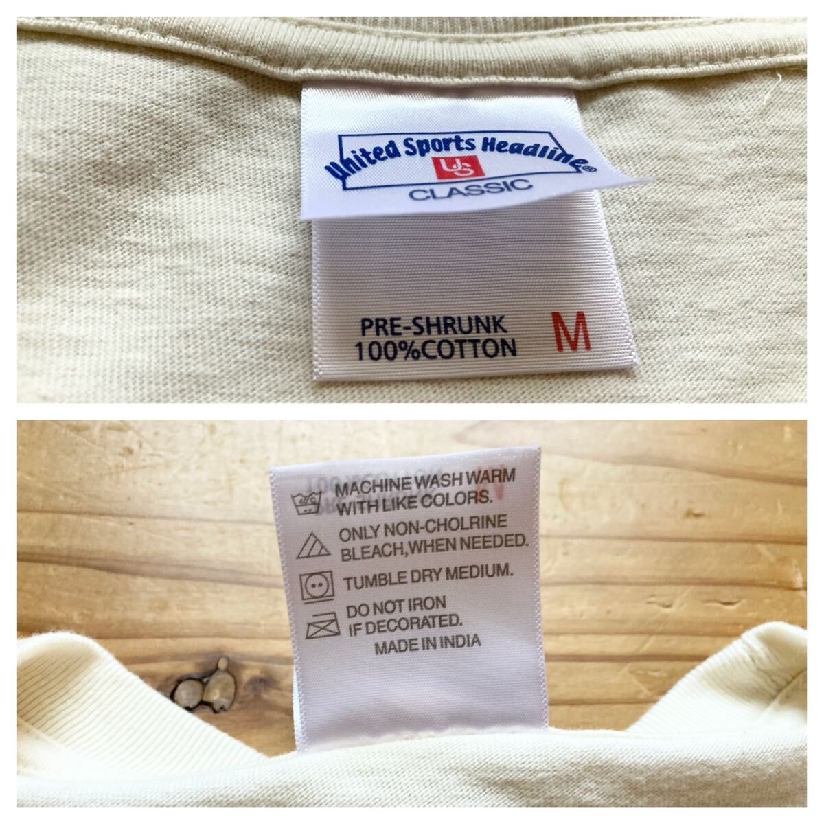 こちら、インド製、PRE-SHRUNK cotton 100%の丸胴仕様Tシャツです。