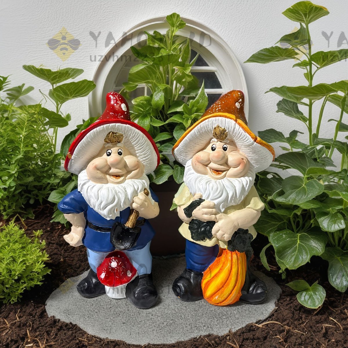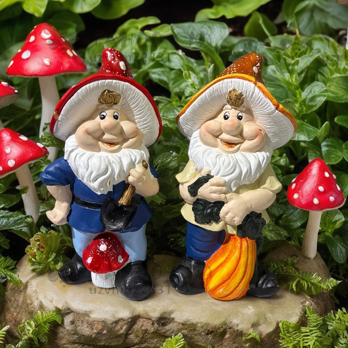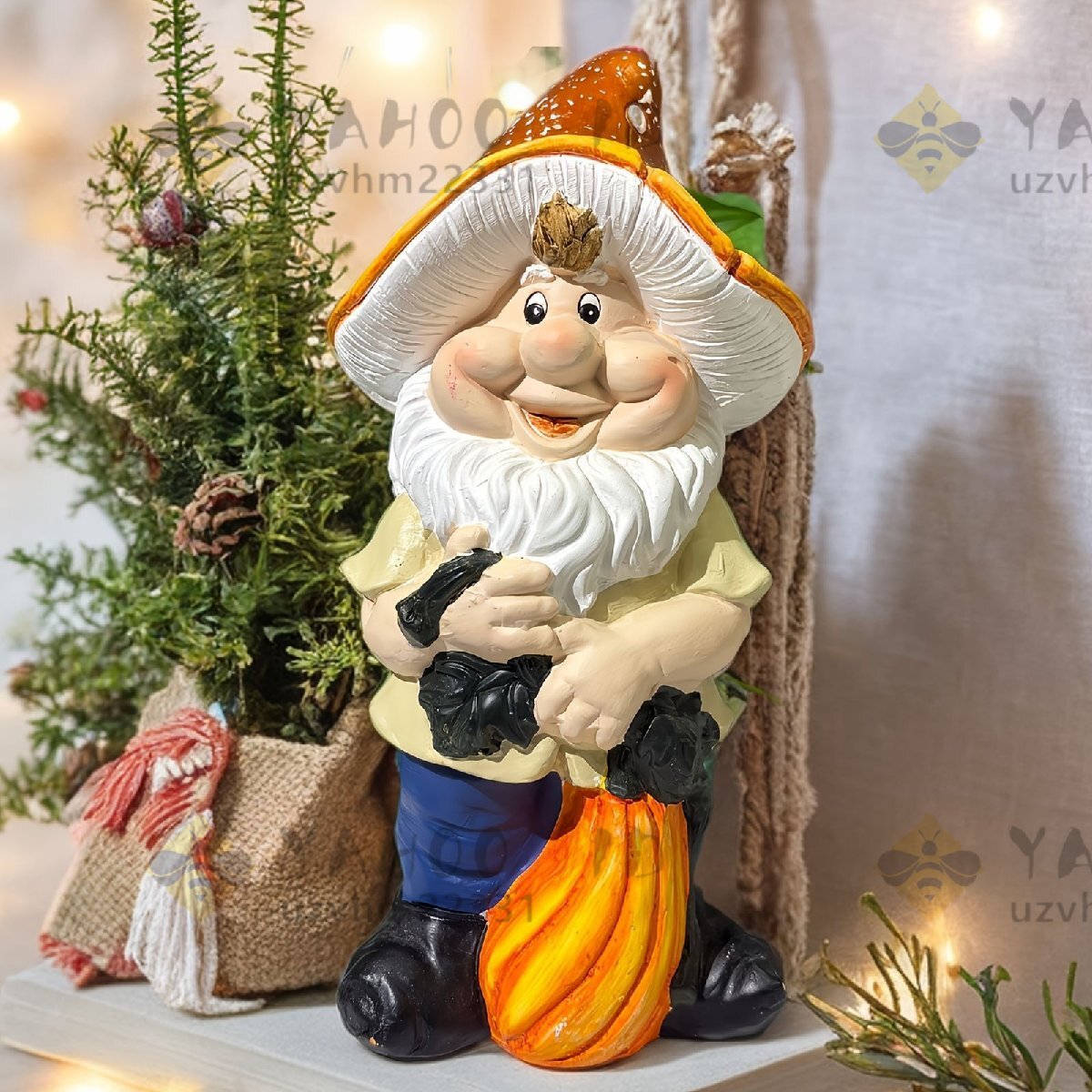可愛い小人がかぼちゃとキノコの上に乗っている、ユニークなガーデンオーナメントです。この置物は、屋内でも屋外でもお使いいただけるため、インテリアや装飾に最適です。玄関やリビング、ダイニング、お庭など、様々な場所に彩りを添え、訪れる人々を笑顔にしてくれます!特にガーデニングや季節の装飾にぴったりなアイテムです。