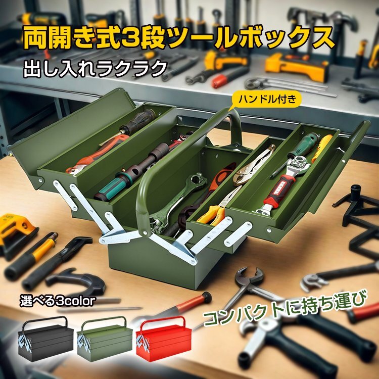 1円 ツールボックス 三段 工具箱 DIY 道具 大容量 ツールボックス 工具ボックス 収納BOX 3段 両開き 工具ケース 道具箱 DIY ny119