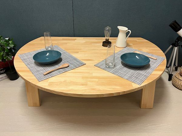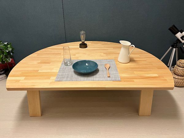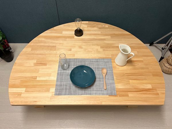 ◎上品な木目が綺麗なパイン材を天板に使用した、半月形のローテーブルです。