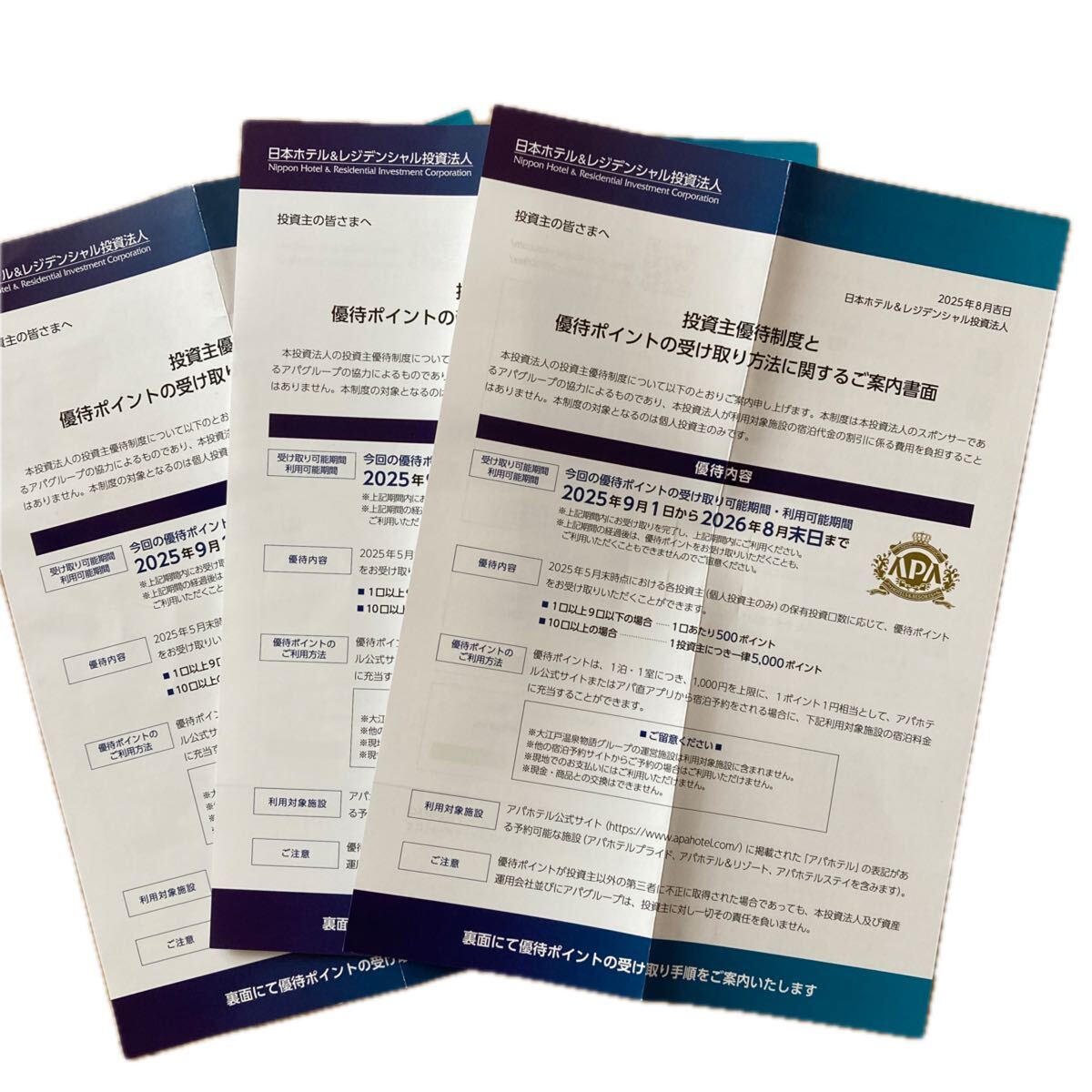 【即決:ナビ通知】アパホテル 6000円分(2000円分x3)日本ホテル&レジデンシャル投資法人 株主優待 2026/8/31まで有効