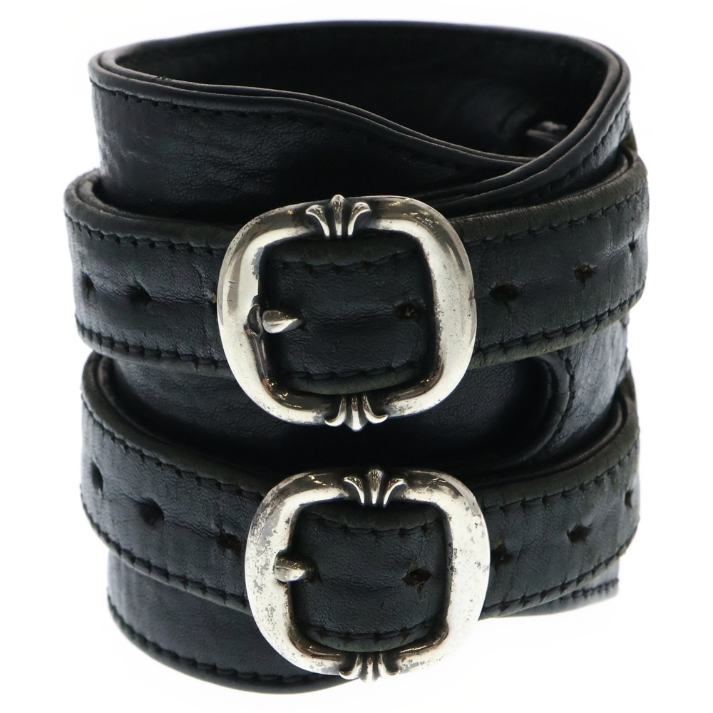 CHROME HEARTS クロムハーツ DOUBLE RR ダブルロックンロール レザーブレスレット ガンスリンガー ブラック