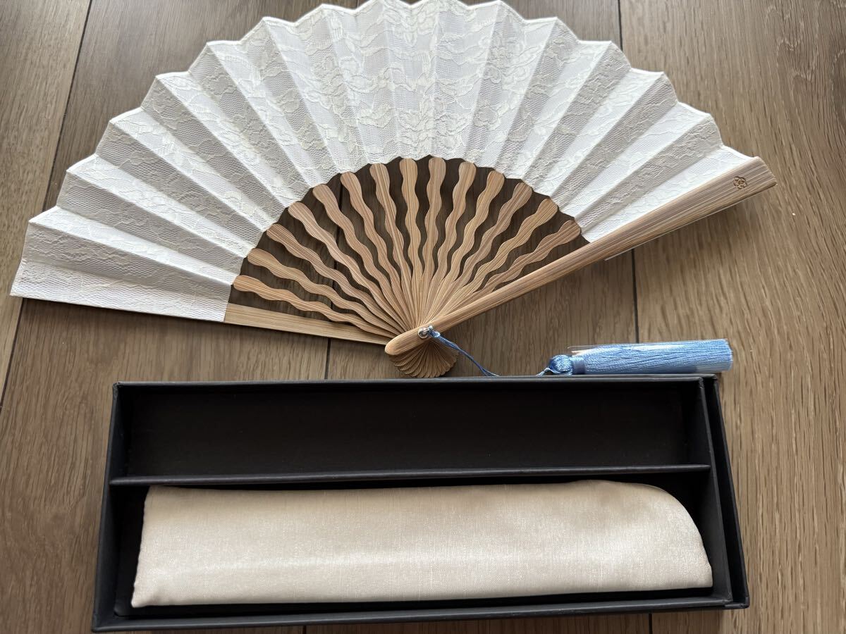 和風のレースデザインの扇子と扇子入れのセットです。収納ケース付き。