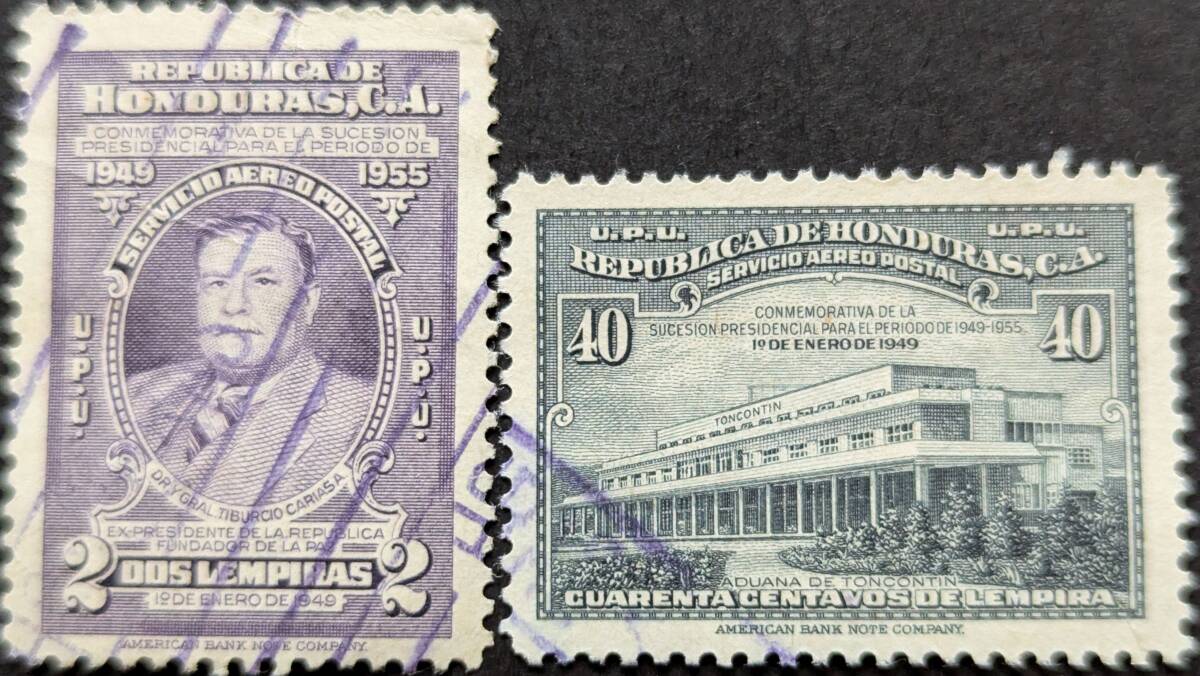 【外国切手】 ホンジュラス 1949年09月17日 発行 航空便 - フアン マヌエル ガルベス大統領就任式 - 「大統領継承記念」と記さ... 消印付き